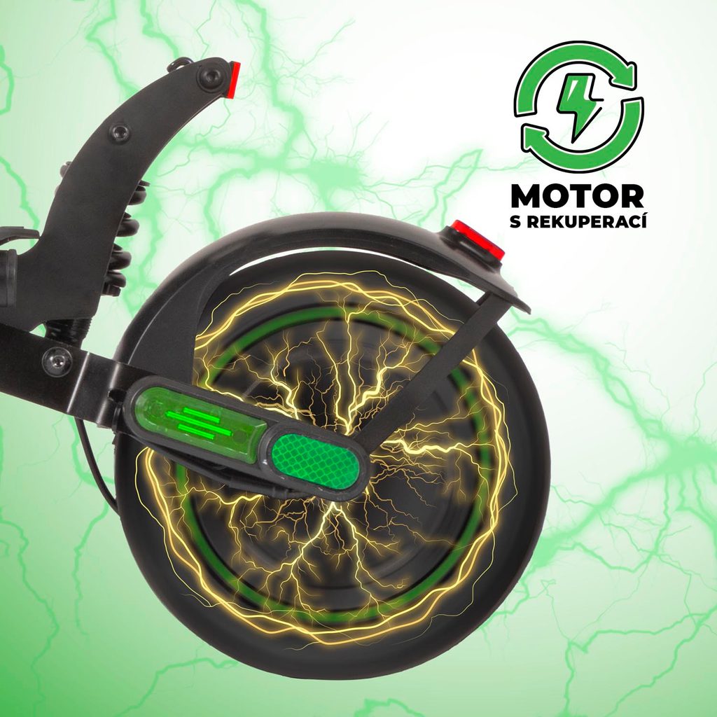 Koloběžka využívá 48V 13000mAh baterii, která ve spojení s rekuperačním brzdovým systémem a funkcí tempomatu přináší efektivní a pohodlný provoz. Rekuperace při zpomalování vrací část energie zpět do baterie, zatímco tempomat pomáhá udržet konstantní rychlost bez nutnosti držet páčku plynu. Díky této technologii dosahuje koloběžka dojezdu až 59 km na jedno nabití. To z ní činí ideální volbu pro každodenní městské dojíždění i delší výlety. Plné nabití trvá přibližně 6 hodin.