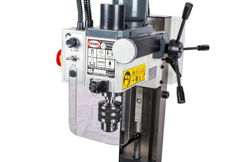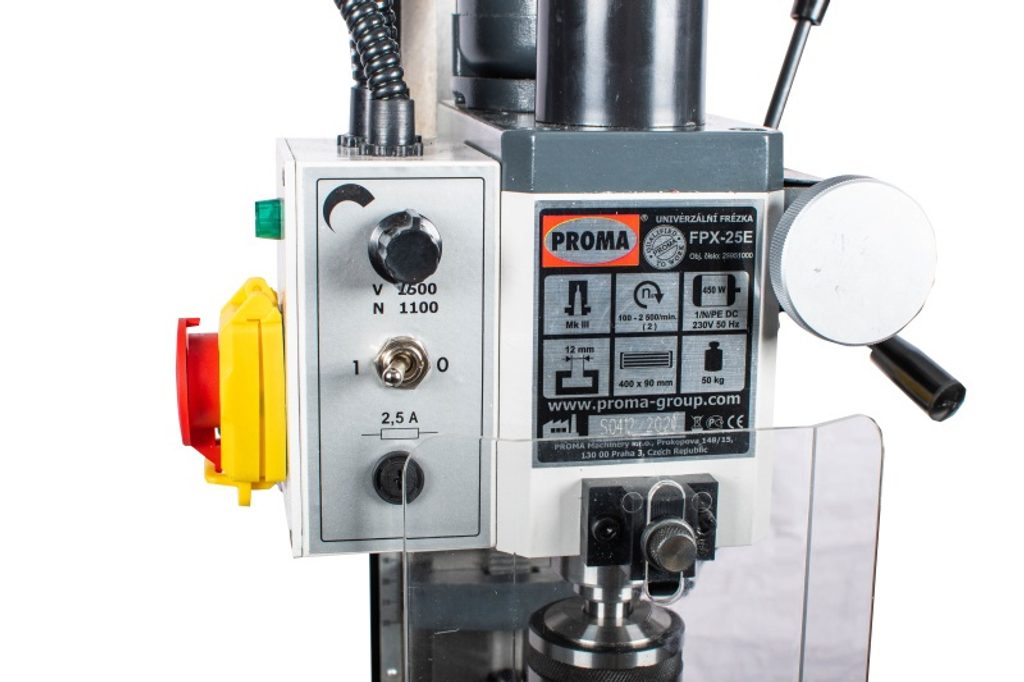 Frézka PROMA FPX-25E se řadí do kategorie menších frézek v naší nabídce, určených pro náročné modeláře, kutily a menší dílny. Stroj je vybaven výkonným motorem, plynulou regulací otáček a dvoustupňovou převodovkou.