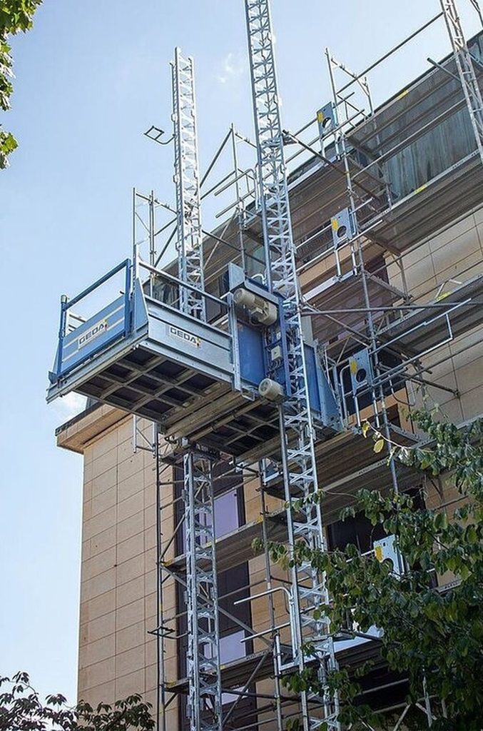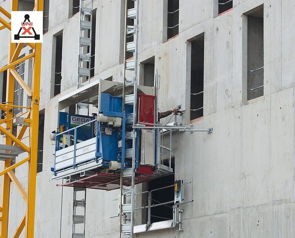 GEDA 1500 Z/ZP (400V) bez plošiny je univerzální stavební výtah, který kombinuje přepravu materiálu i osob. Díky dvousloupovému systému umožňuje stabilní a bezpečný provoz i při přepravě těžkého a neskladného stavebního materiálu.