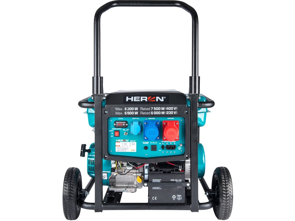 Buďte první, kdo ohodnotí "HERON elektrocentrála benzínová 17HP/8,2kW/10,25kVA (400V), 6,5kW (230V), podvozek, elektrický start, 8896147"