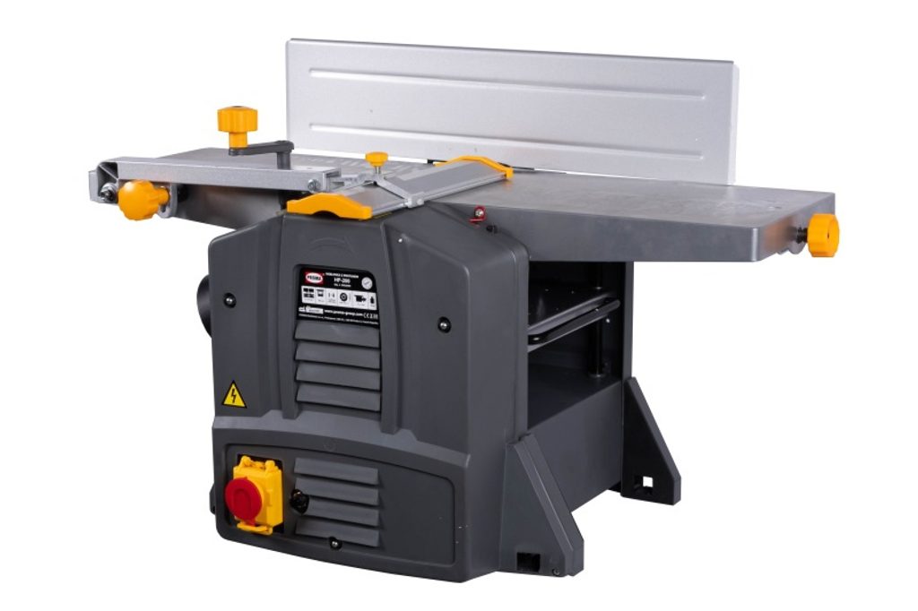 HP-200 Hoblovka s protahem je malá a kompaktní. Lze ji snadno přenášet, je to ideální stroj k montážním a kutilským pracem. Hoblovka s protahem HP-200 je vysoce kvalitní stroj určený pro obrábění měkkého i tvrdého dřeva - plynulé tloušťkování a srovnávání. Hoblovka s vysouvacími podpěrami obrobků zároveň umožňuje pohodlnou manipulaci. Čisté pracoviště zajišťuje praktické odsávání třísek. Hoblovka má robustní, masivní konstrukci, hoblovací srovnávací stůl je vyroben z odolného hliníku a je opatřen naklápěcím dorazem pro srážení hran. Potřebnou stabilitu zajišťují nohy tlumící vibrace. Hoblovka rovněž disponuje spínačem při přetížení a spínačem nulového napětí, který zabraňuje nechtěnému spuštění stroje po výpadku proudu.