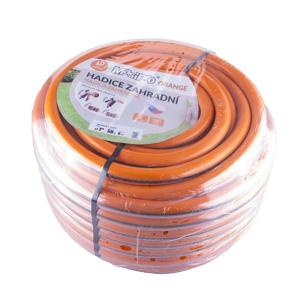 Oranžovošedá zahradní hadice s černou duší.