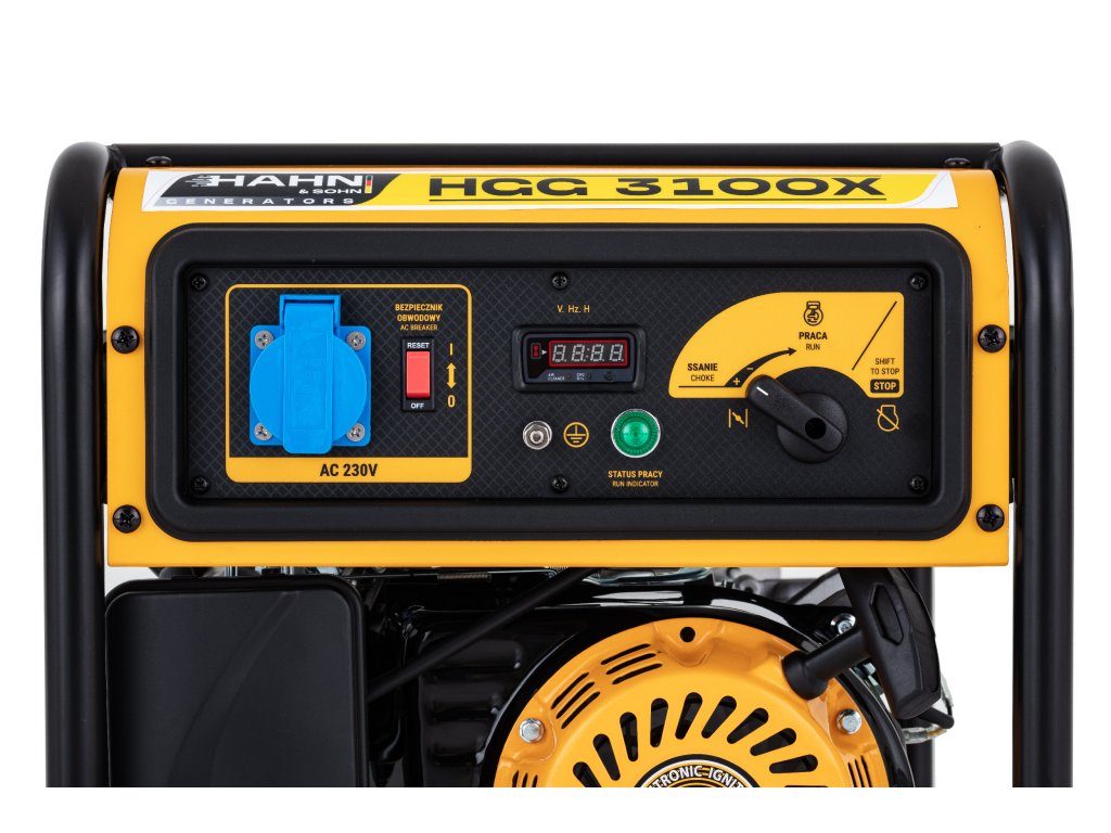 jednofázový generátor HGG 3100X - 3,3 KWHahn & Sohn HGG 3100X je moderní benzínová elektrocentrála, která zaujme svou spolehlivostí a bezproblémovým provozem. Díky tomu je Hahn & Sohn HGG 3100X všestranným pomocníkem pro staveniště, akce, v zemědělství nebo ve vašem vlastním domě s nízkou hmotností pouhých 40 kg. Generátor je vhodný i pro nouzové napájení.