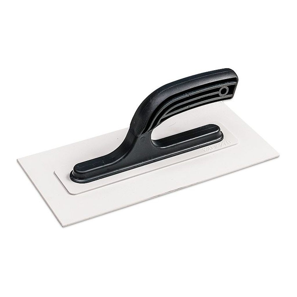 Hladítko s plastovou rukojetí.