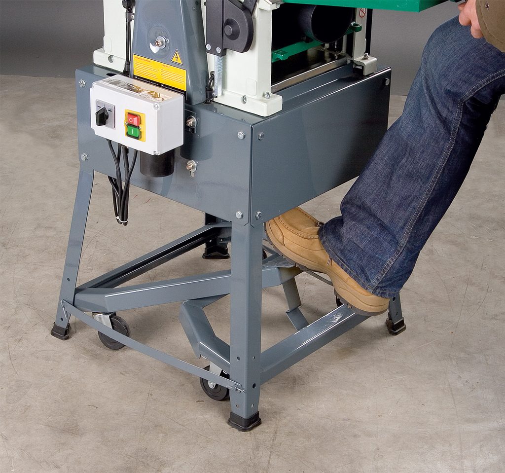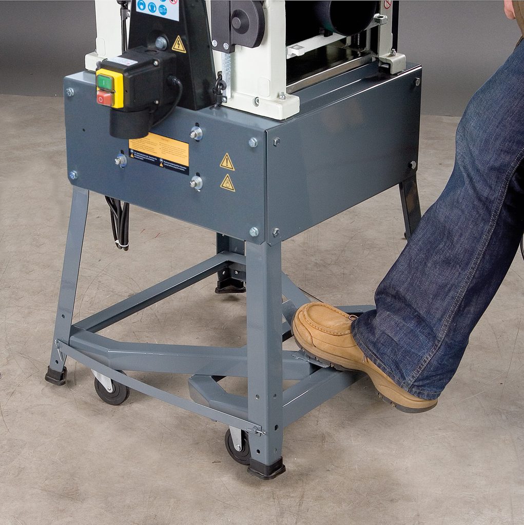 Praktický stroj s hoblovací šířkou 260 mm a podstavcem s možností pojezdu.