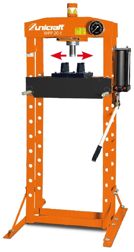 Hydraulický lis s robustním svařovaným rámem s deseti polohami výškového nastavení.