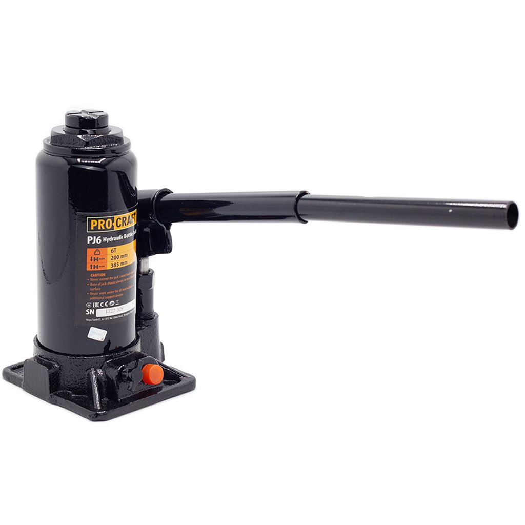 Hydraulický zvedák Procraft PJ6 je určen k zdvihání automobilů, ve stavebnictví a průmyslu. Konstrukce je z kvalitní litiny, vybavena bezpečnostním ventilem. Zvedák má zdvihací kapacitu 6 tun a zdvihový rozsah od 200 mm do 385 mm a vybaven šroubovací patkou. Pohodlné zdvihání a plynulé spouštění břemen usnadňují práci. Součástí dodávky je tyč. Balení karton.