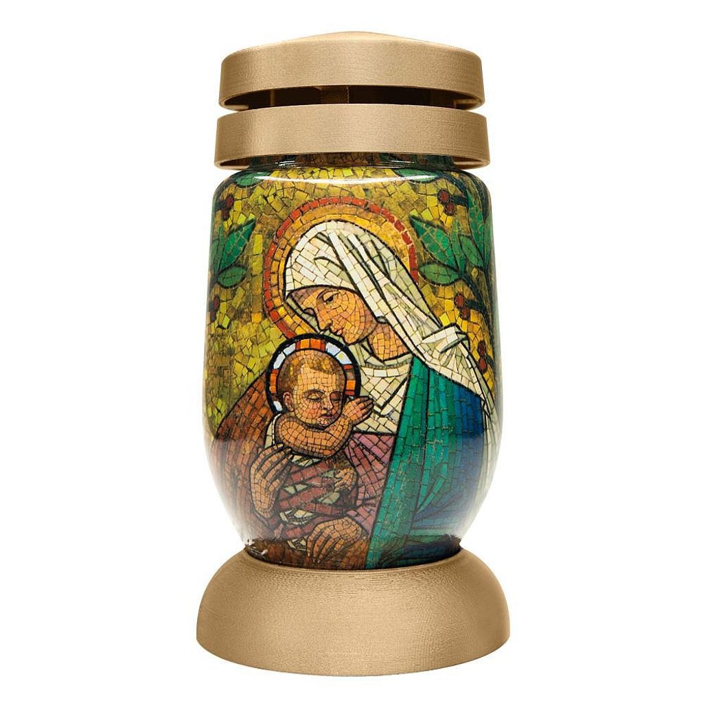 Kahan s obrazem Marie s Ježíšem v odstínech zlaté se zlatými akcenty.