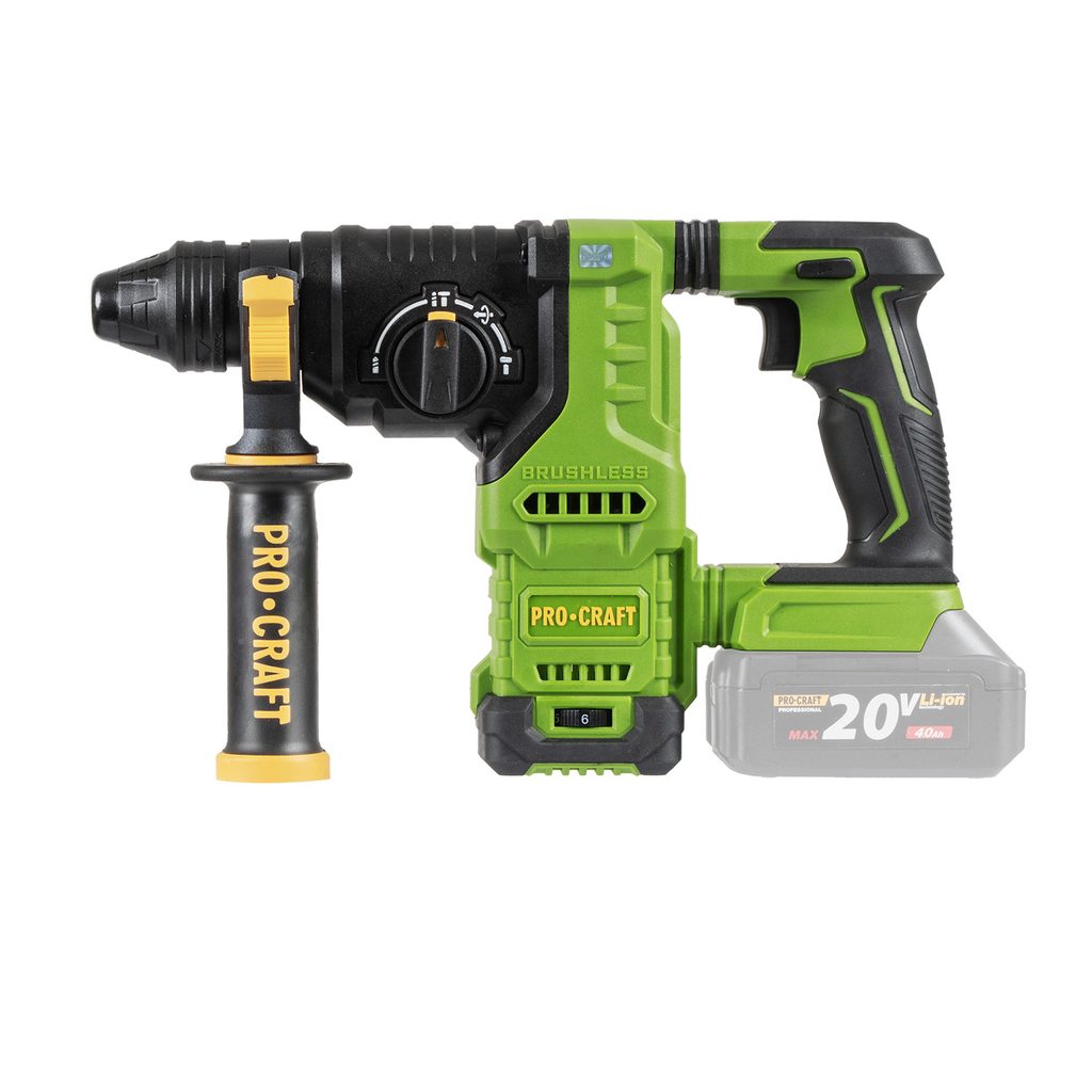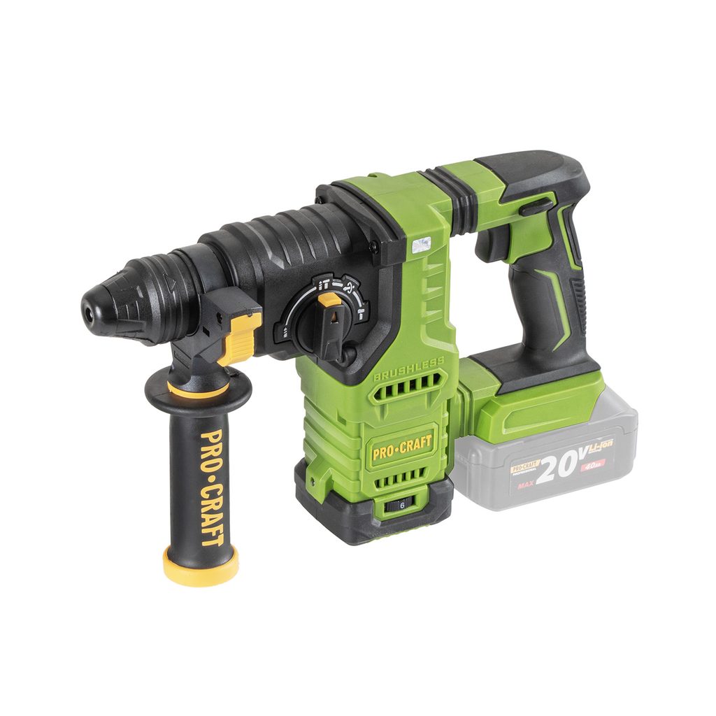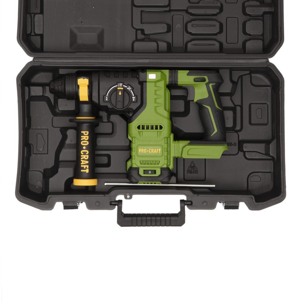 Kombinované AKU kladivo Procraft PHA30bb s upínáním SDS Plus je určeno k vrtání a lehkým bouracím pracím. Jako příslušenství lze použít SDS Plus příklepové vrtáky do betonu, ploché - špičaté nebo tvarované sekáče na stavební materiály, hadovité (spirálové) vrtáky a dláta do dřeva.