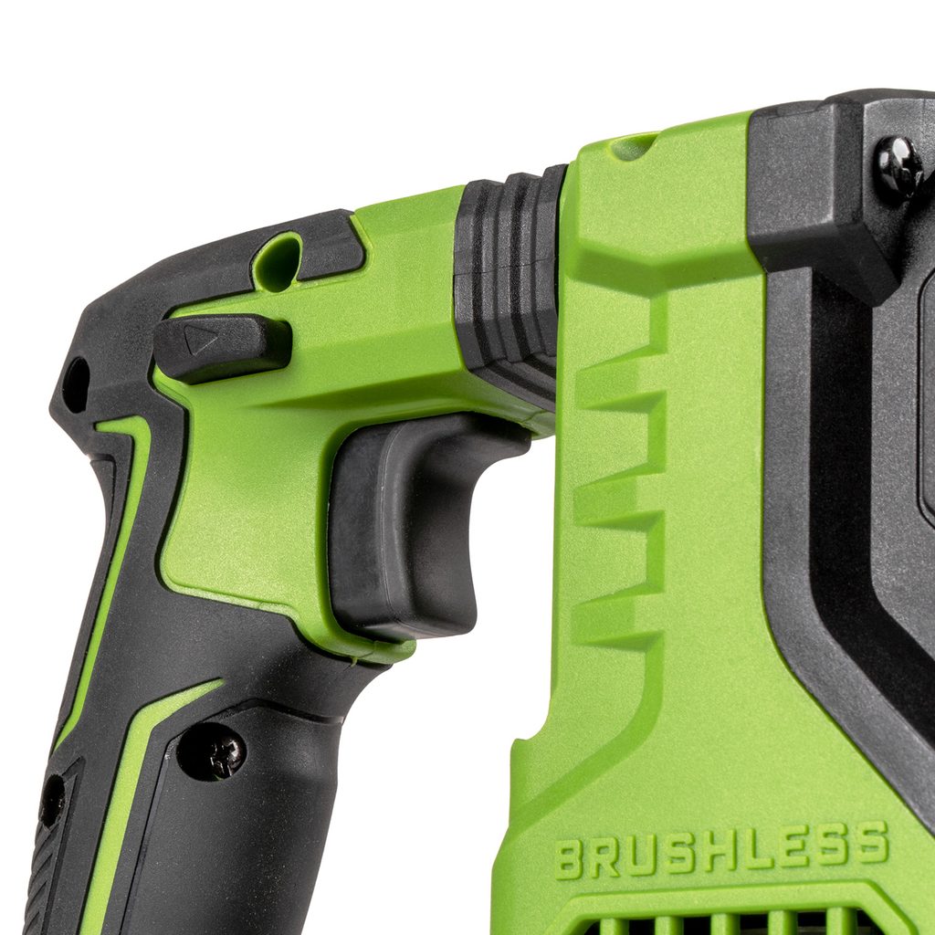 Bezuhlíkový motor (Brushless): Zajišťuje vyšší účinnost, delší životnost a stabilní výkon i při dlouhodobém zatížení. Minimalizuje zahřívání a snižuje energetické ztráty.
