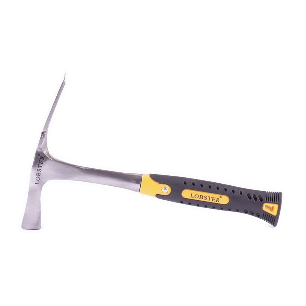 Kladivo zednické celokovové s tvarovanou plastovou rukojetí.