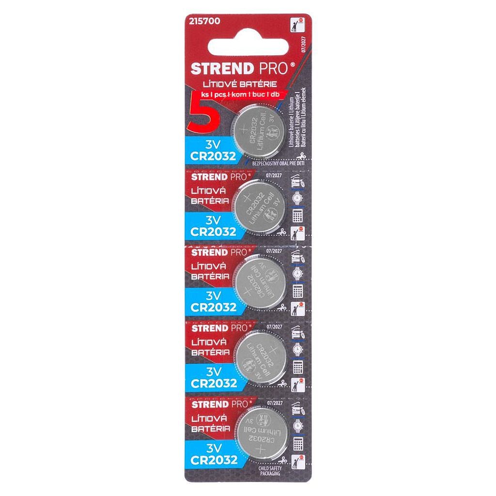 Praktické 5-kusové balení lithiových baterií s označením CR2032.