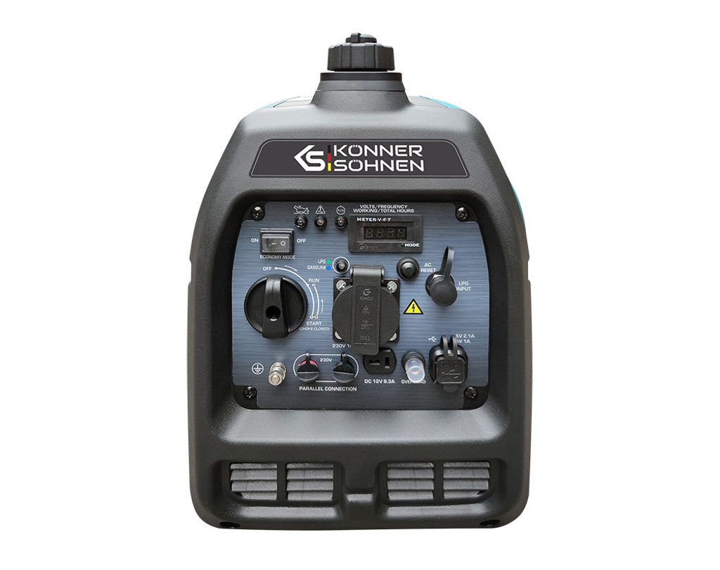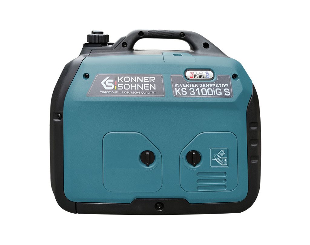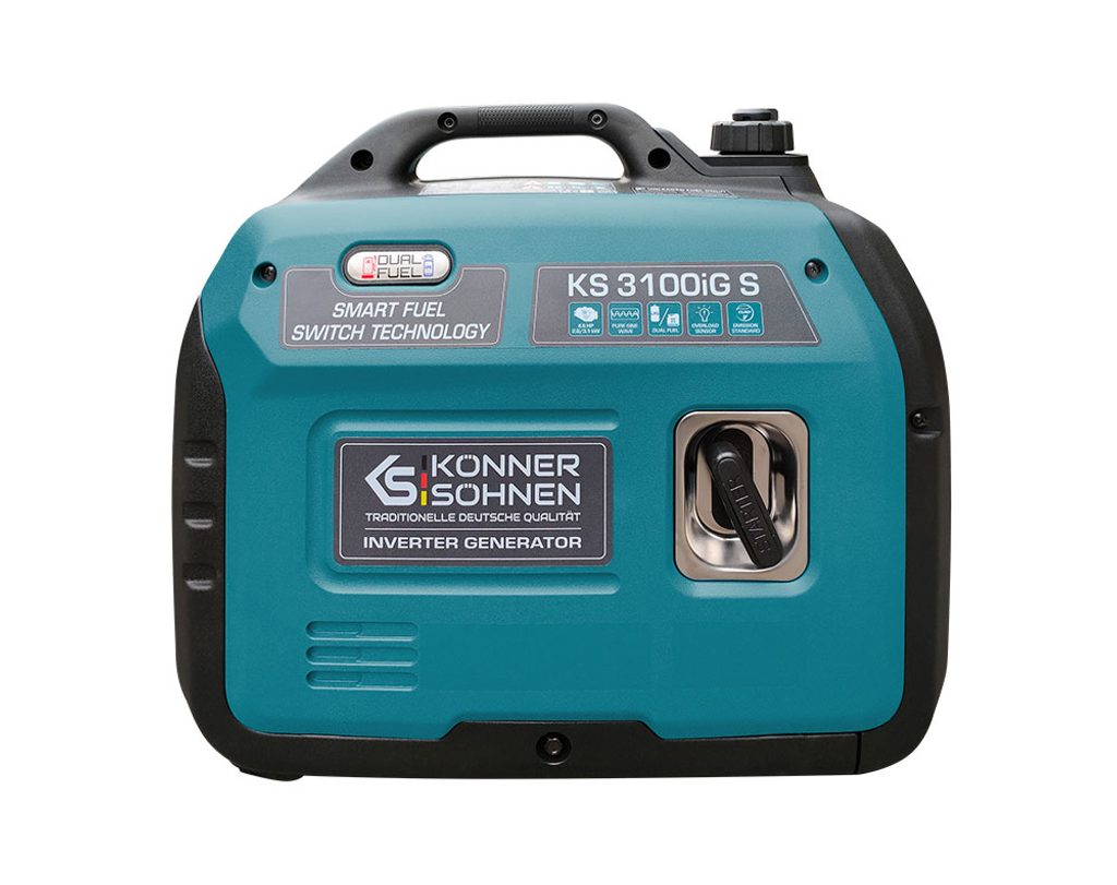 Invertorový generátor na LPG/benzín KS 3100iG S německé značky „Könner & Söhnen“ v odhlučněném krytu slouží jako pohodlný, přenosný a tichý zdroj energie. Hlavní vlastností tohoto modelu je, že poskytuje čistou sinusovou vlnu elektrické energie.