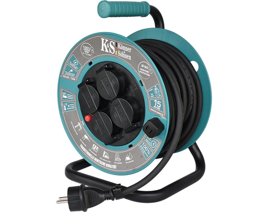 Prodlužovací kabel s navijákem KS CR-15M a délkou kabelu 15 metrů je vhodný pro připojení až 4 zařízení současně k síti 230V v místech, které jsou daleko od zásuvek. Má třídu ochrany IP44, která umožňuje použití kabelu venku i při vysoké vlhkosti díky ochranným vlastnostem proti náhodnému vniknutí kapiček vody a pevných částic.