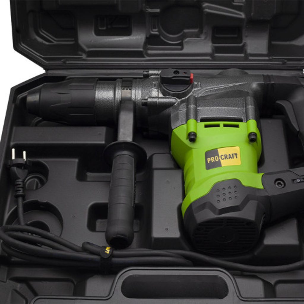 Kombinované kladivo Procraft BH2350 SDS MAX je určeno k práci se stavebními materiály jako jsou cihly, beton nebo kámen. Regulace otáček a příklepů umožňuje nastavení optimálních parametrů při práci s různými materiály. Protože kladivo má rukojeť tvaru „D“, chrání vaši ruku před zraněním a zajišťuje pohodlné držení. Jako příslušenství lze použít SDS Max příklepové vrtáky do betonu, ploché - špičaté nebo tvarované sekáče na stavební materiály, hadovité (spitálové) vrtáky a dláta do dřeva. Součástí dodávky je sekáč, vrták a přepravní kufr. Balení karton.
