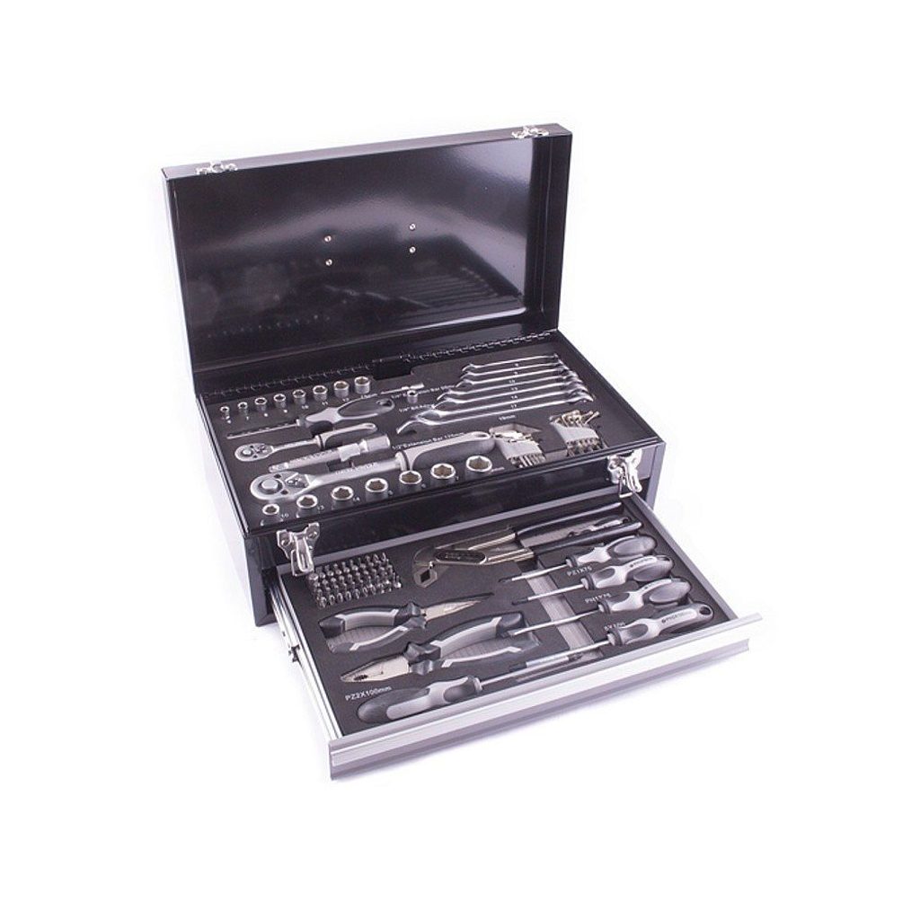 Nezbytnou součástí dílny je kvalitní 106 dílná sada nářadí Lobster uložená v praktickém kufru,