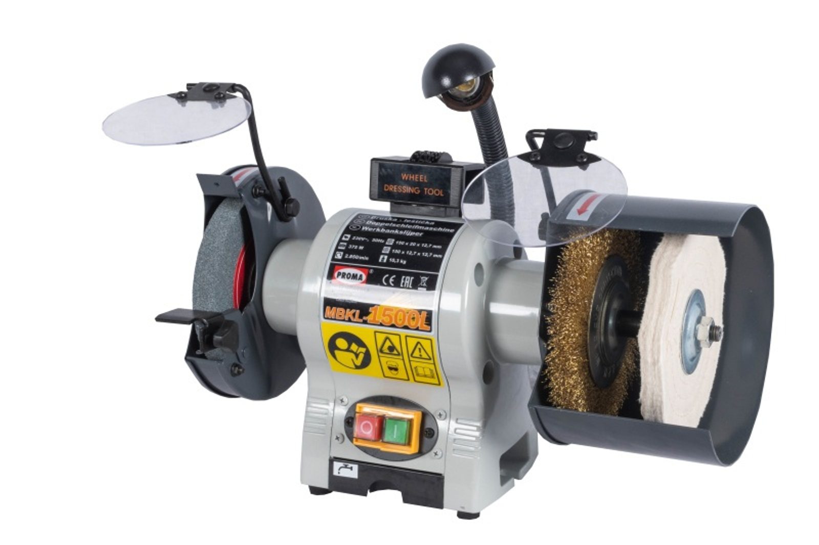 MBKL-1500L - Dvoukotoučová bruska - leštička je určena pro broušení kovových součástí, dílců, pro ostření nástrojů (vrtáky, tvarování materiálů, sekáče, nože, zahradnické nářadí atd.) a prokartáčování, případně leštění. Podle použitého brusného kotouče lze používat na různé druhy materiálu. Využití bruska najde v nástrojařských dílnách, ůdržbách, malých a středních výrobních provozech
