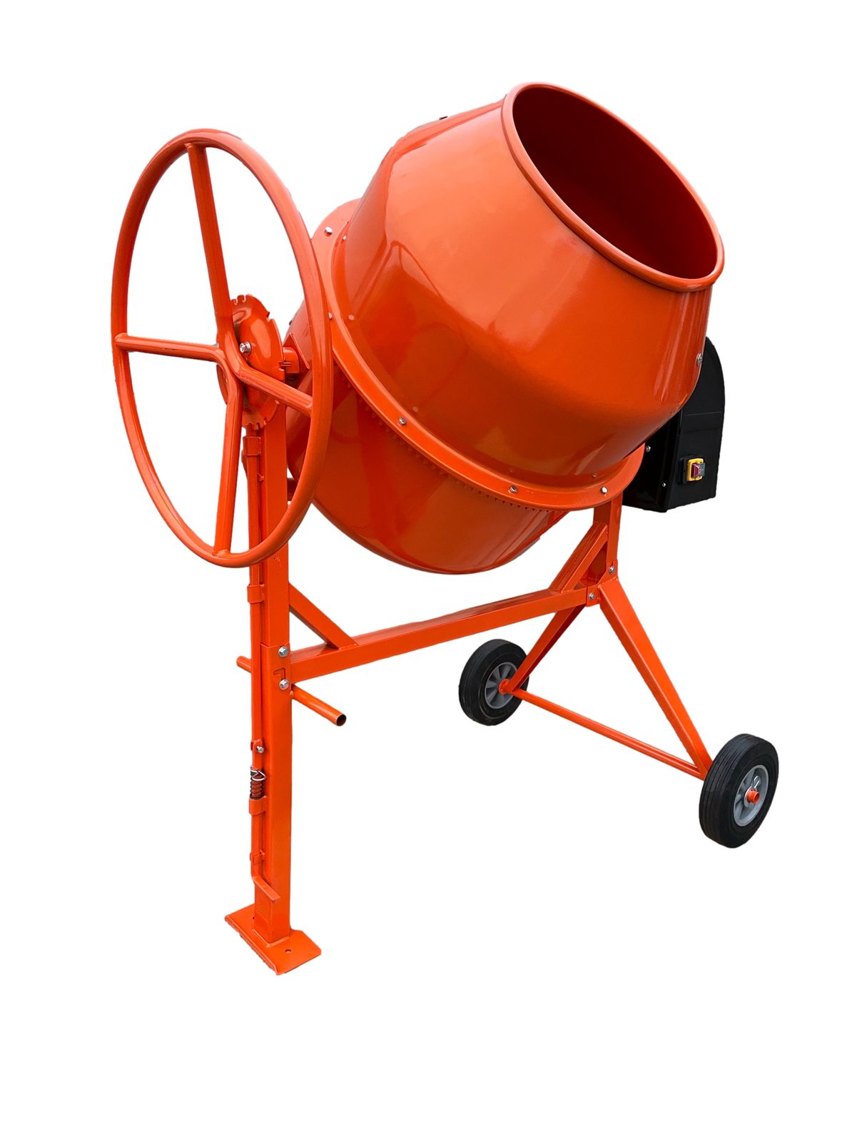 Kvalitní míchačka 230L za perfektní cenu. Je vhodná pro střední stavební práce. Namíchá až 3 kolečka směsi. Vyniká snadnou manipulací a skladovatelností. Je výborným a užitečným pomocníkem na všech menších stavbách, zvláště při přimíchávání menších objemů betonu. Rám a buben jsou vyrobeny z kvalitní oceli a pokryty práškovým nátěrem oranžové barvy.