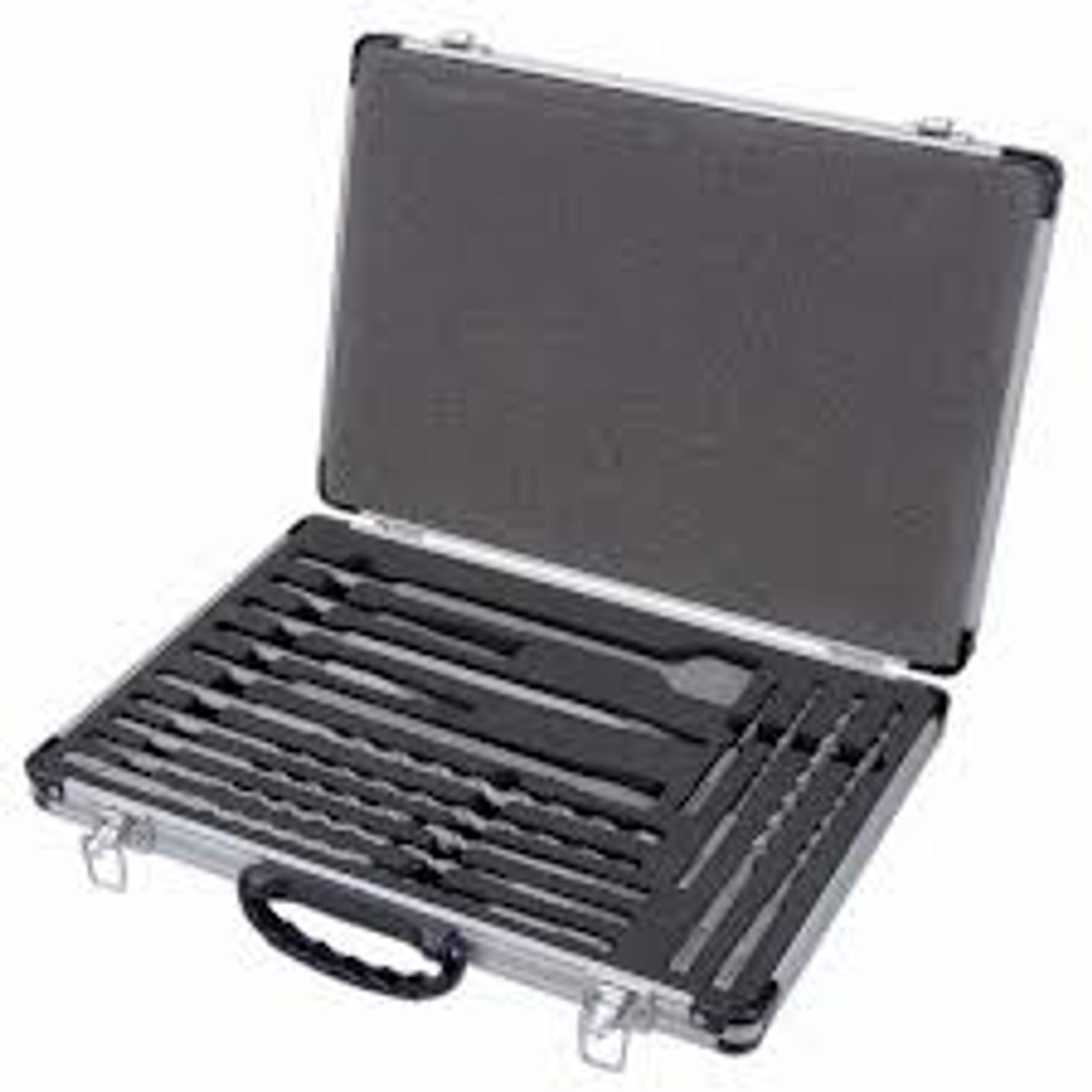 12 vrtáků a 5 x sekáče SDS plus v hliníkovém kufru