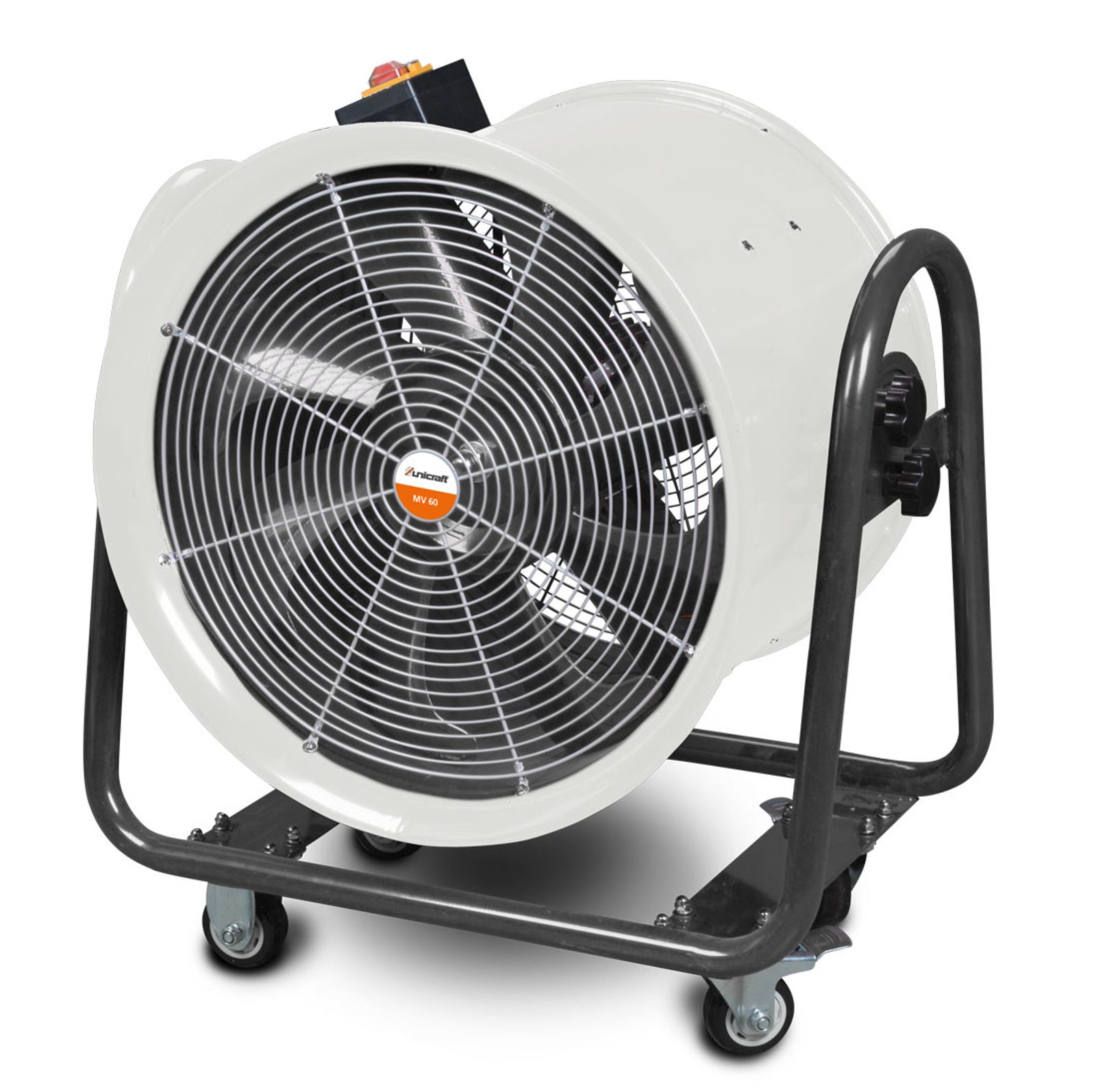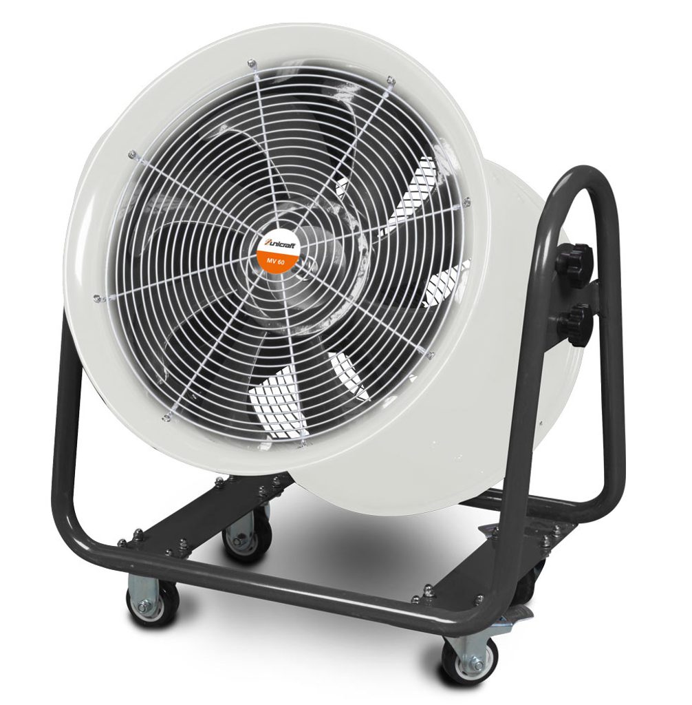 Mobilní ventilátor vhodný pro odvádění teplého vzduchu, dýmu, prachu, plynů, zápachu a jinak zatíženého vzduchu.