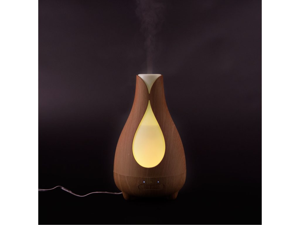 Zvlhčovač vzduchu s difuzérem v designu přírodního dřeva (imitace dřeva). Aromatizuje a zvlhčuje vzduch kombinací účinků vodní mlhy a esenciálních olejů. Pomocí jemného ultrasonického vlnění rozkládá esenciální oleje na extrémně malé mikročástice, aniž by je zahříval. Oleje si tak zachovávají původní vůni i léčivé účinky. Aroma difuzér vám pomůže vytvořit z každého pokoje vonící oázu a navodit relaxační atmosféru.Bez přidání esenciálního oleje vám aroma difuzér poslouží jako zvlhčovač vzduchu. Přidáním konkrétního esenciálního oleje můžete sobě, nebo vašim blízkým pomoci s různými obtížemi. Postačí pár kapek kvalitního oleje a můžete ulevit rýmě, kašli, bolestem hlavy, nebo špatnému usínání. Správně zvolený olej vyčistí vzduch, nebo vám jednoduše zpříjemní pobyt v místnosti, ve které se právě nacházíte.Díky neutrálnímu designu světlého přírodního dřeva stylově doplní vybavení všech obytných prostor, dětských pokojů, jednacích místností, masážních salónů, wellness center apod. Vhodně zvolenými esenciálními oleji můžete podpořit relaxační atmosféru v ložnici, dezinfekci vzduchu či klidný spánek v dětském pokoji. Koncentraci v pokoji studenta anebo uvolněnou komunikaci, ať už doma nebo v pracovním prostředí.Používejte vždy kvalitní oleje. Použitím levných, umělých olejů sice vytvoříte voňavé prostředí, ale tělo a mysl si neodpočinou. Citlivým osobám může naopak uškodit. Například bolestí hlavy apod.Během provozu aroma difuzéru lze libovolně a jednoduše nastavit světelné efekty, které vytvoří ve vašem pokoji velmi příjemné prostředí a navodí relaxační atmosféru. Aroma difuzér je vhodný všude, kde je z bezpečnostních důvodů nemožné použít otevřený oheň (svíčky v aroma lampách). Kombinuje účinky vodní mlhy a esenciálních olejů.Obsluha aroma difuzéru je velmi jednoduchá. Do zásobníku nalejete vodu, nejlépe destilovanou. Nakapete několik kapek esenciálního oleje a přístroj zapnete stiskem tlačítka MIST (mlha). Aroma difuzér začne okamžitě vytvářet vodní mlhu a rozptylovat olej do vzduchu. Druhým stiskem nastavíte nižší intensitu tvorbu mlhy a třetím ho vypnete. Pomocí tlačítka LIGHT můžete nastavit režim barevného podsvícení. Prvním stisknutím nastavíte režim automatické změny barvy. Dalšími stisky můžete nastavit různé barvy v intenzivnější nebo světlejší verzi, které zůstanou nastaveny během provozu přístroje, dokud je nezměníte.Nemusíte kontrolovat množství vody v zásobníku. Po vyprázdnění se aroma difuzér sám vypne.