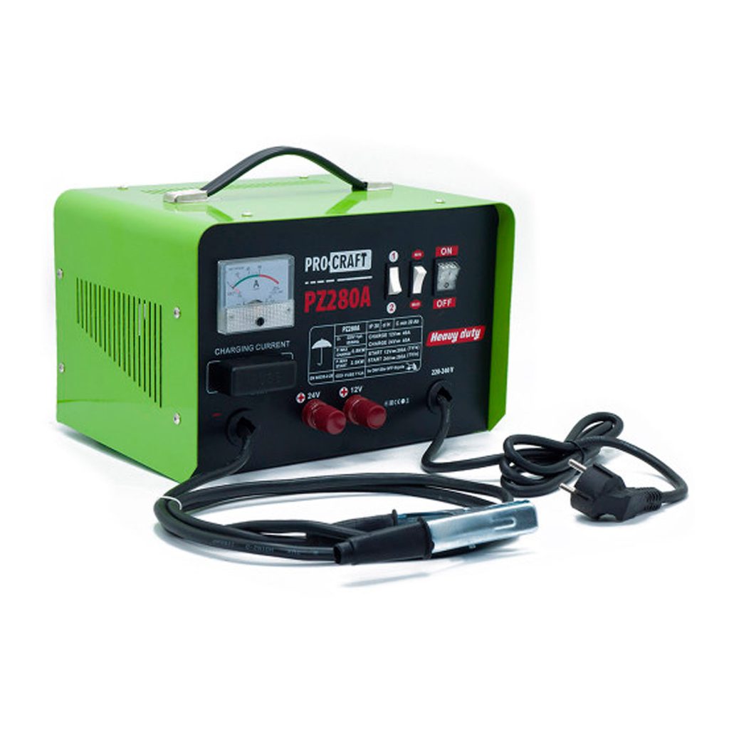Procraft PZ280A je výkonná nabíječka autobaterií kombinovaná se startovacím zdrojem, která je ideální pro osobní i nákladní automobily, motocykly, dodávky a další vozidla. Díky vysokému nabíjecímu proudu až 20 A a startovacímu proudu 280 A zvládne spolehlivě dobíjet a nastartovat i velké motory.