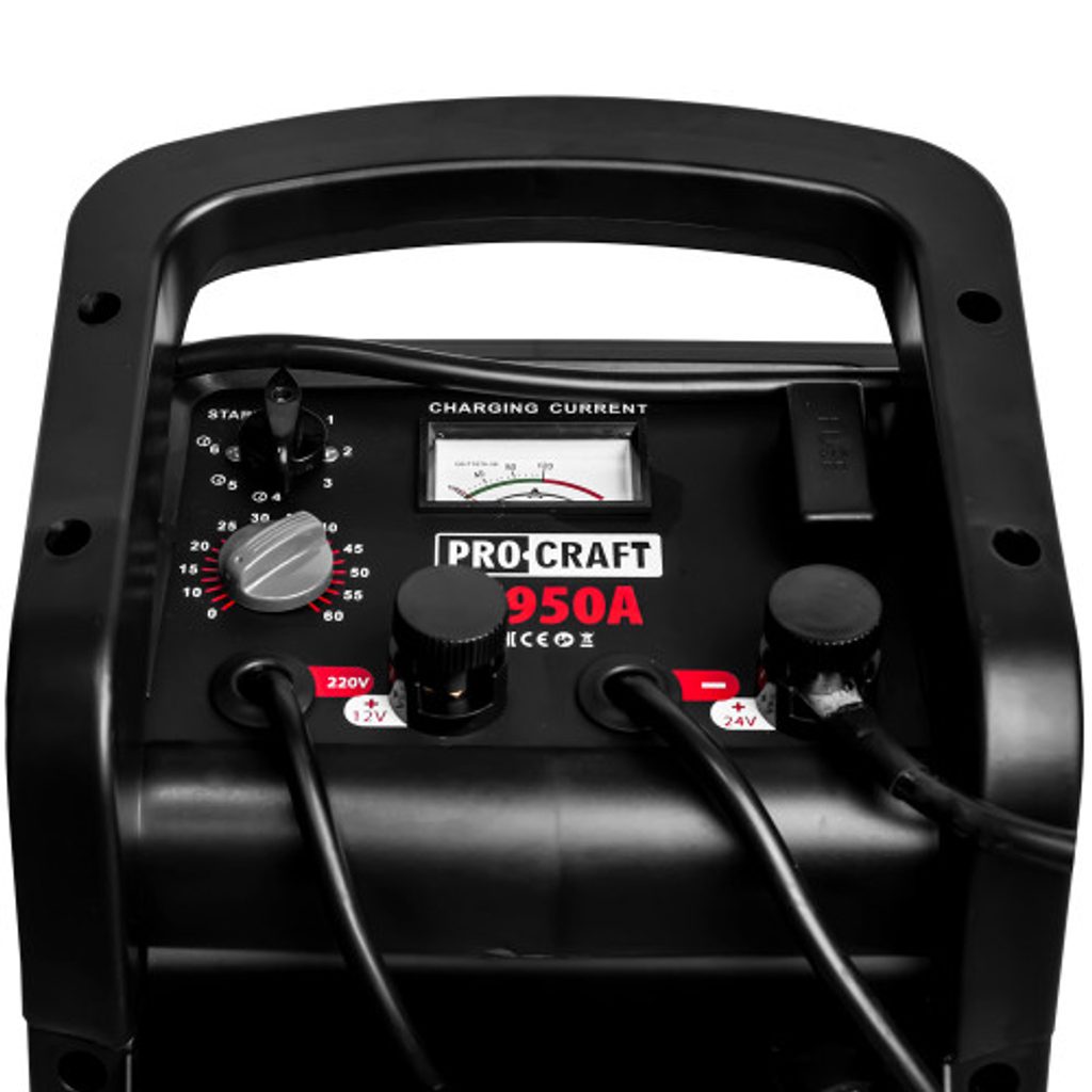 Procraft PZ950A je výkonná nabíječka autobaterií kombinovaná se startovacím zdrojem, která je ideální pro osobní i nákladní automobily, motocykly, dodávky a další vozidla. Díky vysokému nabíjecímu proudu až 85 A a startovacímu proudu 950 A zvládne spolehlivě dobíjet a nastartovat i velké motory.