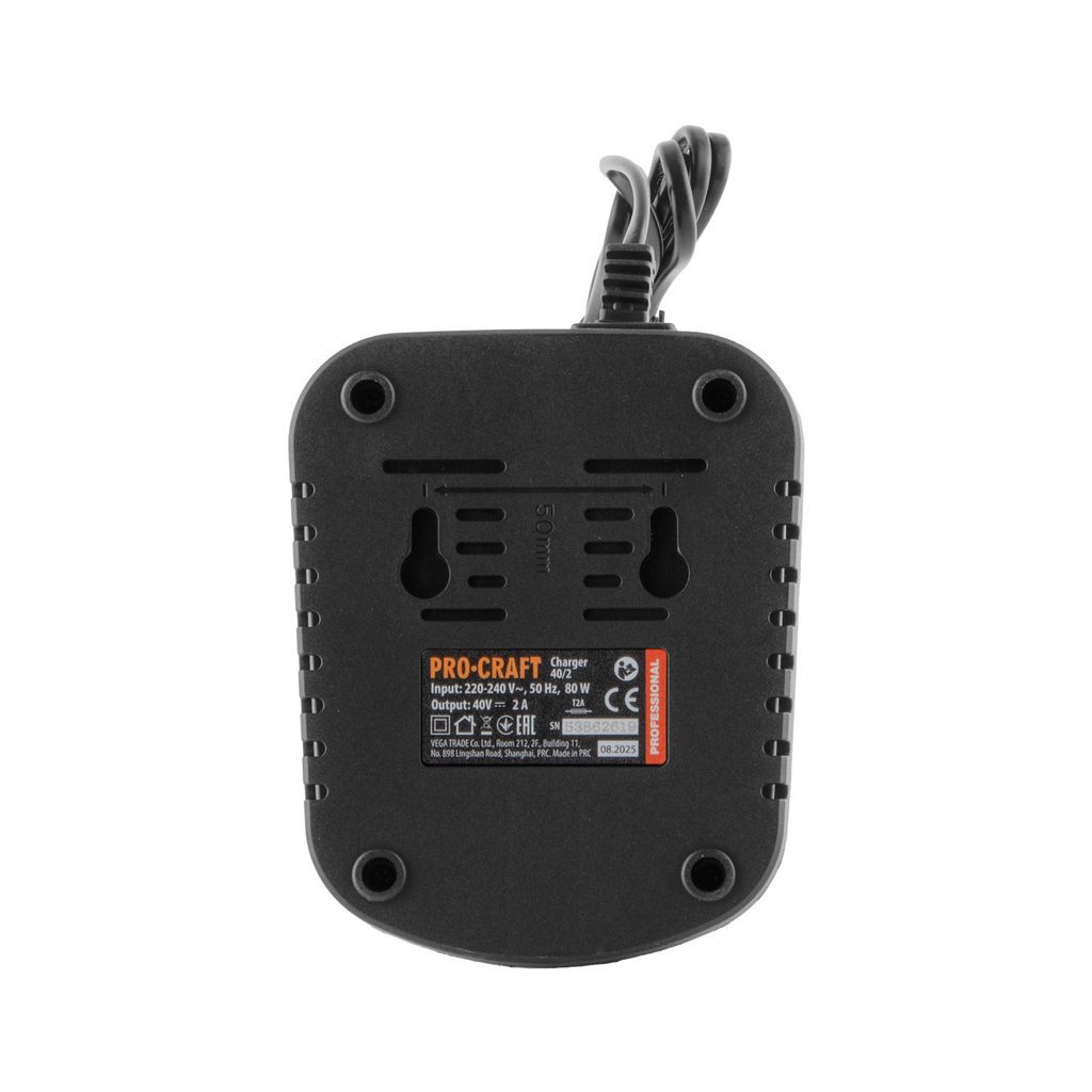 Exkluzivní kompatibilita s baterií Procraft 20/40: nabíječka je určena pouze pro dvouplatformovou baterii Procraft 20/40 (20V/40V). Není kompatibilní s jinými akumulátory Procraft.