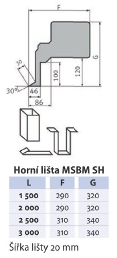 Masivní stroj s elektrickým ovládáním vlastního ohybu s vysokou, dělenou horní lištou.