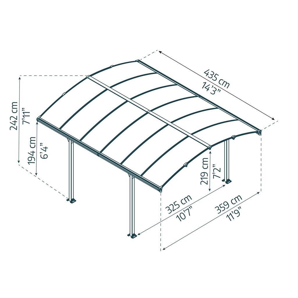 Buďte první, kdo ohodnotí "Palram - Canopia Arcadia 4300 hliníkový (montovaný) přístřešek s obloukovou střechou"