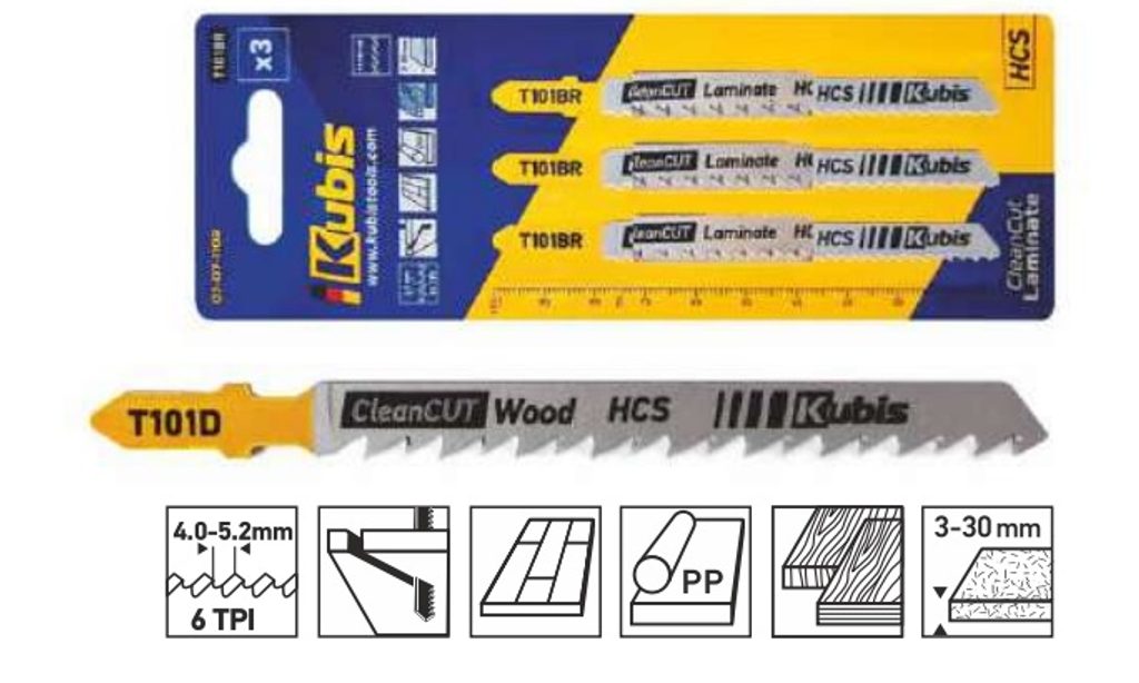 Buďte první, kdo ohodnotí "Pilové listy 3 ks, řezání dřeva, překližky, dřevotřískové desky, laminate, plastů o tlouš | 07-07-1103 Kubis"