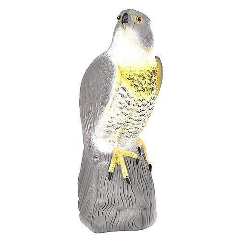 Maketa jestřába sedícího na kameni pomůže zbavit se malého ptactva jako jsou holuby, sýkorky či drozdy a tak napomáhá ochránit úrodu či stavbu před nechtěným ptačím trusem.