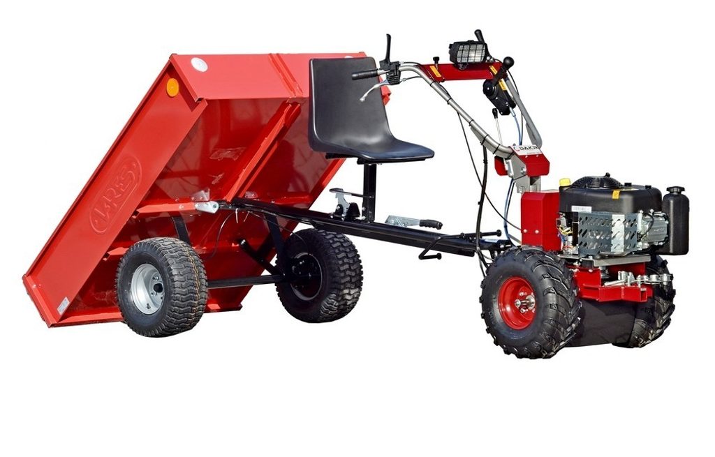 Panter FD52V bude schválený k provozu na veřejných komunikacích, má dvouválcový motor Briggs&Stratton EXi 7220 o výkonu 22 Hp s kroutícím momentem 42 Nm. Hydrostatická převodovka TuffTorq K72A s kroutícím momentem 549 Nm a jmenovitou tažnou sílou 2.000 Nm. Panter FD52V má v porovnání s FD5: - dvouválcový motor - tlakové mazání - olejový filtr - o 45% vyšší výkon motoru - EFM (elektronický sytič) - o 75% vyšší tažná síla hydropojezdu - o 40% vyšší maximální rychlost pojezdu - o 25mm vyšší podvozek - brzdy i na přední nápravě - světla jako u auta, včetně zásuvky pro vozík, maják a další homologované prvky, které umožní provoz na veřejných komunikacích Pokud potřebujete výkonného pomocníka, který orá i seče, pak by pro Vás Panter FD52V mohl být tou správnou volbou. Při práci s tímto strojem se vezete a díky tomu ušetříte v porovnání s ručně vedenou technikou mnoho sil. Pro pohon Pantera FD52V je použitý 4-taktní motor Briggs&Strratton EXi 7220, jenž disponuje maximálním výkonem 22,0 HP. O optimální využití tohoto výkonu se stará hydrostatická převodovka, díky které potenciál motoru beze zbytku využijete a pojezdovou rychlost si upravíte podle aktuálních možností. Chcete-li "přeřadit", máte možnost plynulého nastavení rychlosti v rozmezí 0-14 km/hod vpřed i vzad. Panter FD52V je díky své kompaktní velikosti, vysoké stabilitě a minimálním nárokům na údržbu určený pro široké spektrum uživatelů. Jeho snadné ovládání oceníte při práci na svých zahradách, vinohradech, údržbě zelených ploch i v komunálním sektoru. K Panteru FD52V připojíte pluh, brány, vyorávací radlici, valník, ale také veškeré příslušenství, které již vyrábíme pro stavebnici Panter. Veškeré čelní pracovní nástavce jsou Vám již teď k dispozici, jedná se o dvoubunovou sekačku, diskovou žací lištu, pásový obraceč píce, cepákový mulčovač, zametací kartáč a různé další příslušenství. Výhodou této zcela nové výrobkové řady, že lze použít současné pracovní adaptéry stavebnice Panter. Pro polní práce zase můžete použít nastavovací tělesa, pluhy, radlice, brány a kypřiče, které jste používali u jednoosých malotraktorů. Pracovní funkce: provoz na pozemních komunikacích bubnové a diskové sečení obracení, provzdušňování a shrabování cepákové i nožové mulčování frézování, odhrnování a zametání sněhu orba, bránování, kypření a hrobkování půdy, vyorávání brambor převážení nákladu, rozmetání soli a umělých hnojiv Motor: Briggs&Stratton EXi 7220 OHV, vzduchem chlazený dvouválec Válec: litinová vložka, objem 656 cm3 Startování: elektrické Převodovka: hydrostatická TuffTorq K72 s plynulou změnou rychlosti 0-14 km/hod vpřed i vzad poloosy zesílené průměr 25,4mm Chlazení převodovky: s přídavným chladičem, ukazatel teploty oleje na přístrojové desce Náprava: zadní poháněná s diferenciálem, uzávěrkou a brzdou Pneumatiky: zadní - 5.00x12 přední - 4.00x10 Sedadlo: komfortní průmyslová sedačka, s nastavitelným odpružením ve 3 stupních, podélným nastavením a možností nastavení sklonu opěradla Nádrž a palivo: objem nádrže 8 litrů, palivo benzín Natural 95 Hmotnost stroje: 390 kg Svahová dostupnost: bezpečná svahová dostupnost garantovaná státní zkušebnou 10° motor bezpečně pracuje při trvalém náklonu 20° Výbava v ceně stroje: Pohonná jednotka Panter FD52V obj.č. 01237.005 obraceč Panter OP114 obj.č. 01235.180 závěs pro připojení valníku přední nosič pro pracovní nástavce PANTER obj.č. 01237.010 vládání nosičů obj.č. 01237.020 elektronické zajištění stroje parkovací brzda zásuvka na 12V Volitelné příslušenství, které není v ceně stroje: zadní nosič pro připojení nastavovacího tělesa, pluhu, radlic, bran, atd. závaží do kol 2x13kg závaží na zadní návěs Objednací čísla: 01237.005 + 01237.010 + 01237.020 + 01235.180