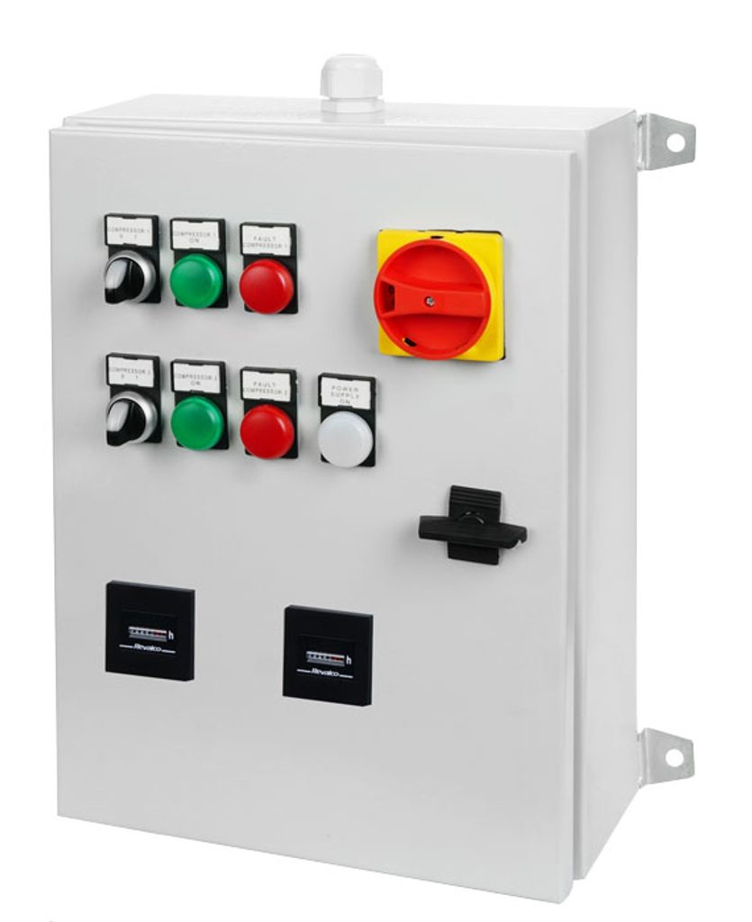 Přepínač pro řízení dvou kompresorů o výkonu 4,0 – 5,5 kW.