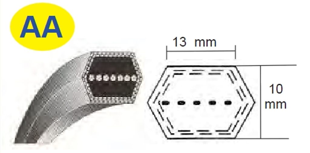 Složení řemenu: tažná vlákna: polyester, výplň: pryž, obal: bavlna