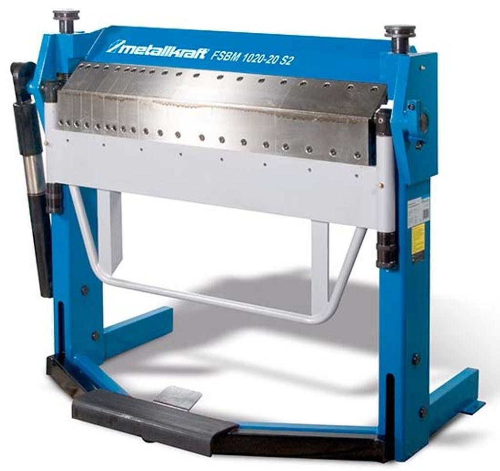 Ruční ohýbačka plechu s nožním ovládáním horní lišty. Univerzálně použitelná pro průmysl a řemeslné dílny.