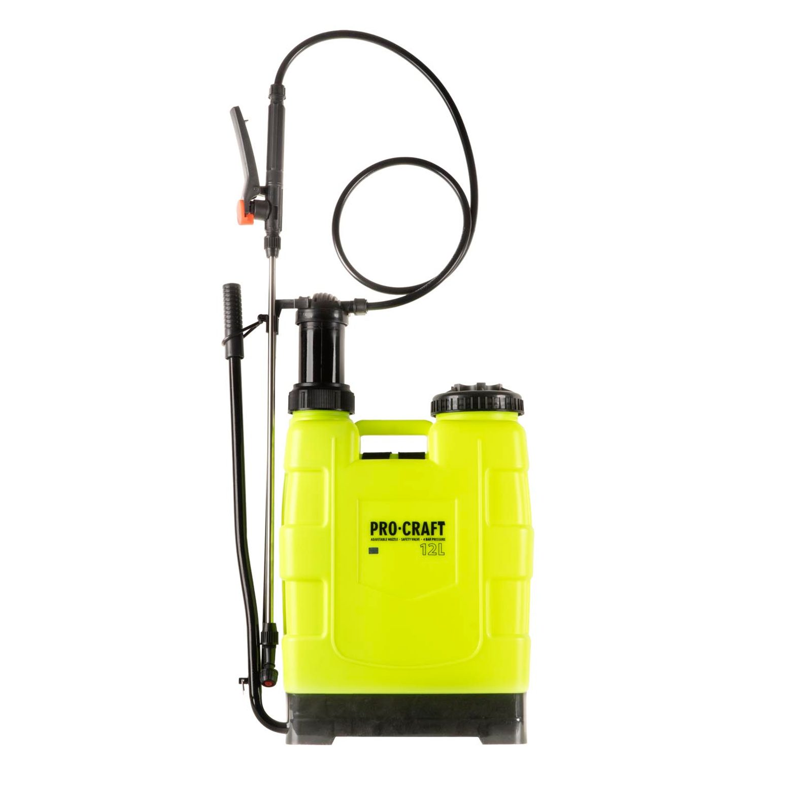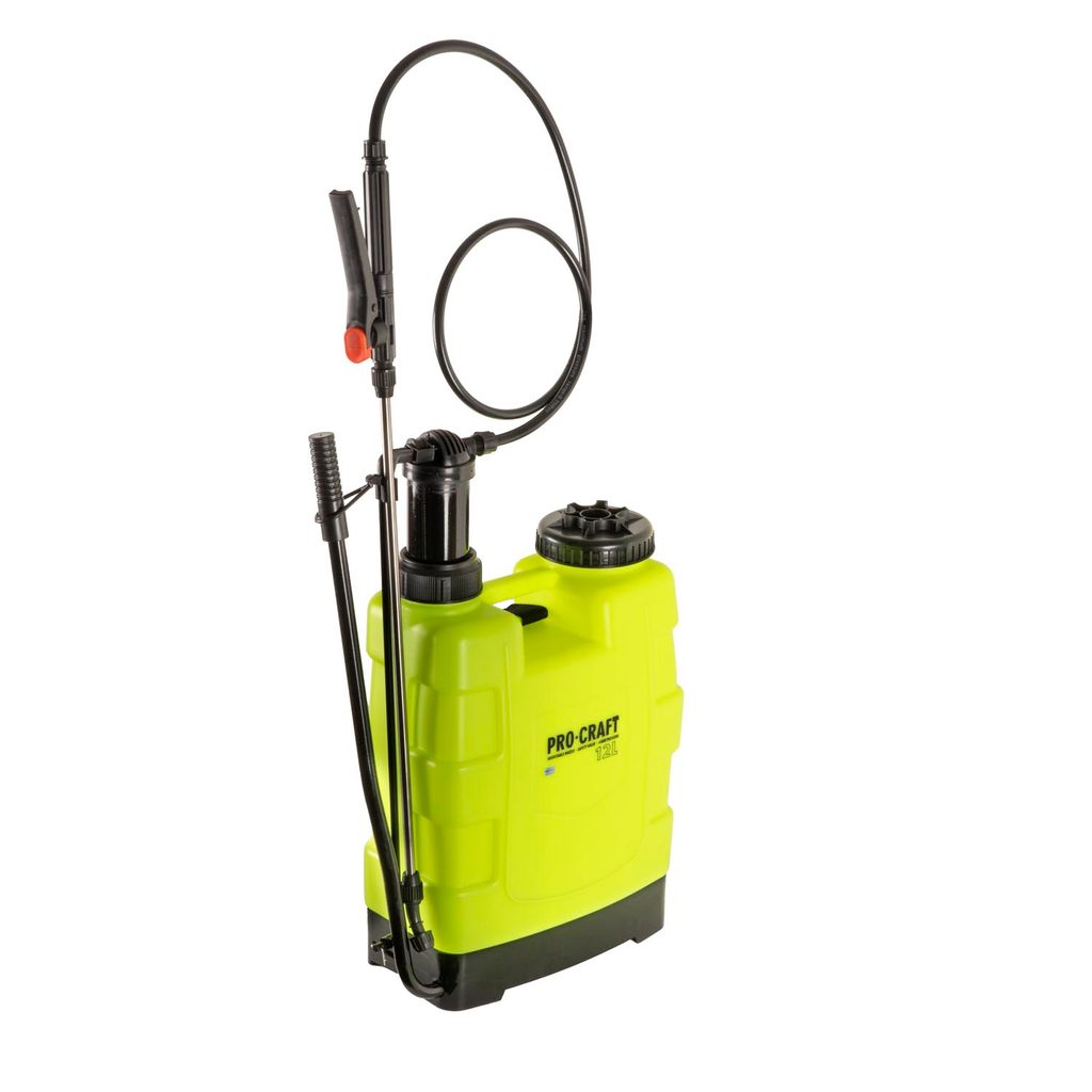 Ruční postřikovač Procraft HS-12 Objem nádrže 12 l Kovová postřikovací trubice. Postřikovač je vyroben z kvalitních materiálů, které pod tlakem nepraskají. Je vybaven gumovým těsněním, které má větší odolnost než standardně dodávané silikonové těsnění. V balení jsou náhradní vyměnitelné trysky, praktický zádový popruh, těsnící kroužky a komfortní spouštěcí pistole. Nádoba postřikovače je průsvitná, takže při práci vidíte objem kapaliny.