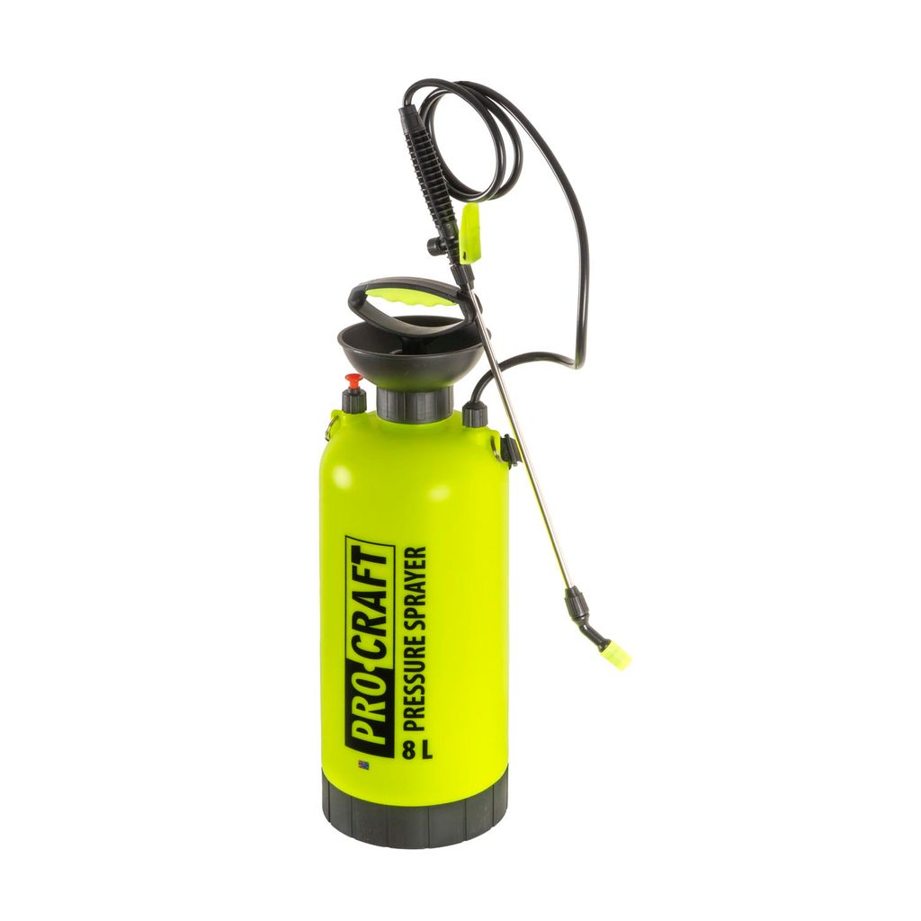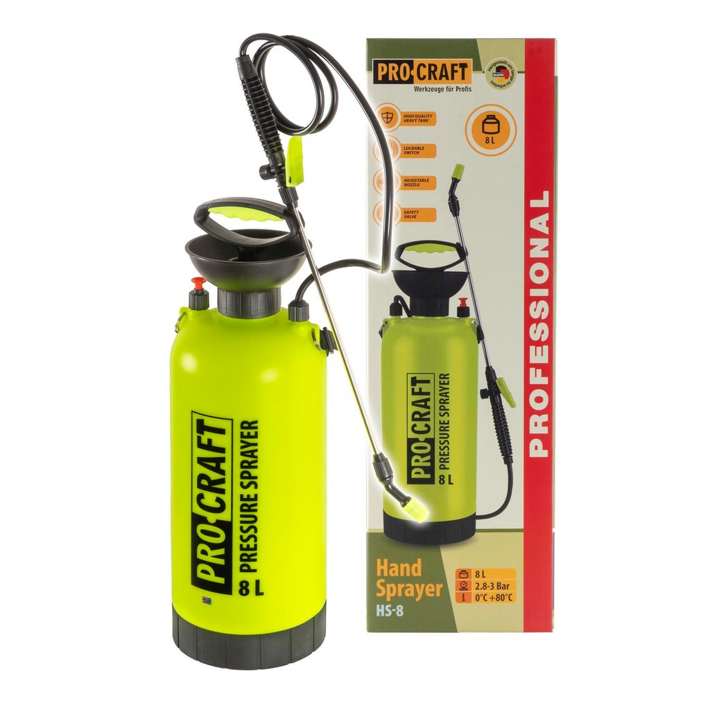 Ruční postřikovač Procraft HS-8 Objem nádrže 8 l Kovová postřikovací trubice. Postřikovač je vyroben z kvalitních materiálů, které pod tlakem nepraskají. Je vybaven gumovým těsněním, které má větší odolnost než standardně dodávané silikonové těsnění. V balení jsou praktický zádový popruh, těsnící kroužky a komfortní spouštěcí pistole. Nádoba postřikovače je průsvitná, takže při práci vidíte objem kapaliny.