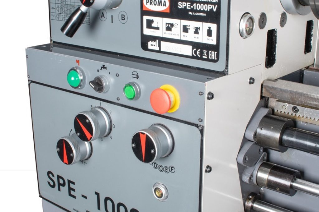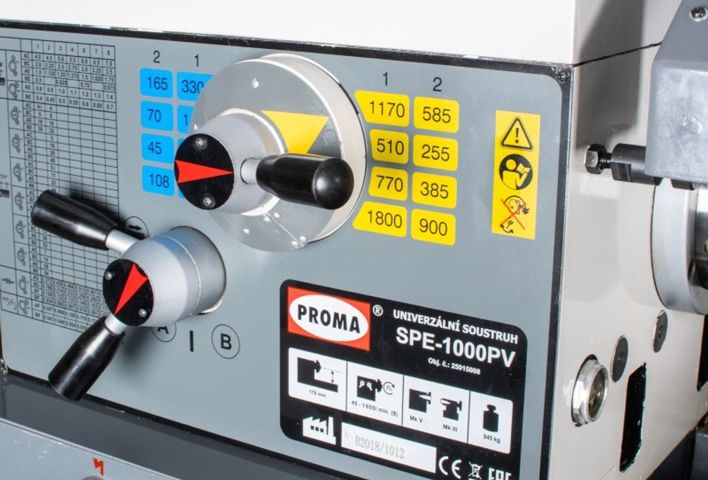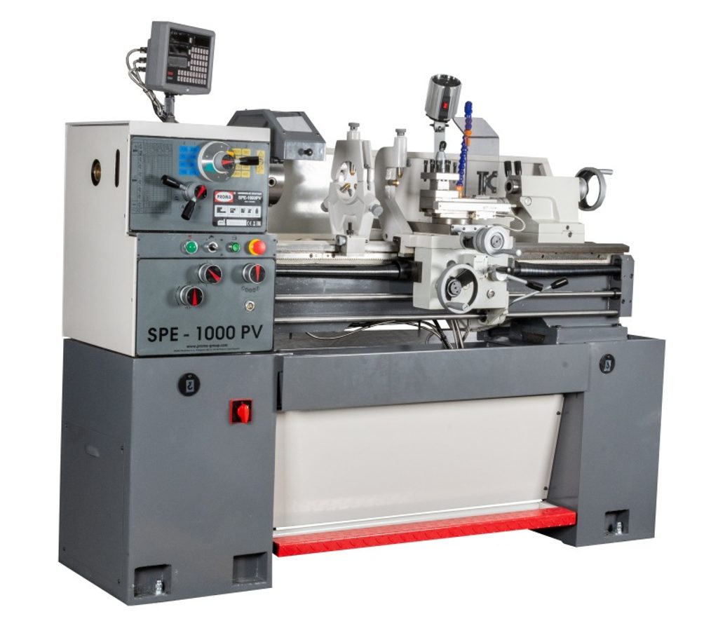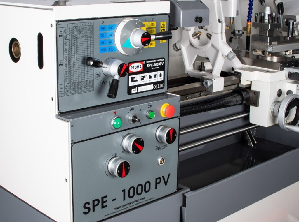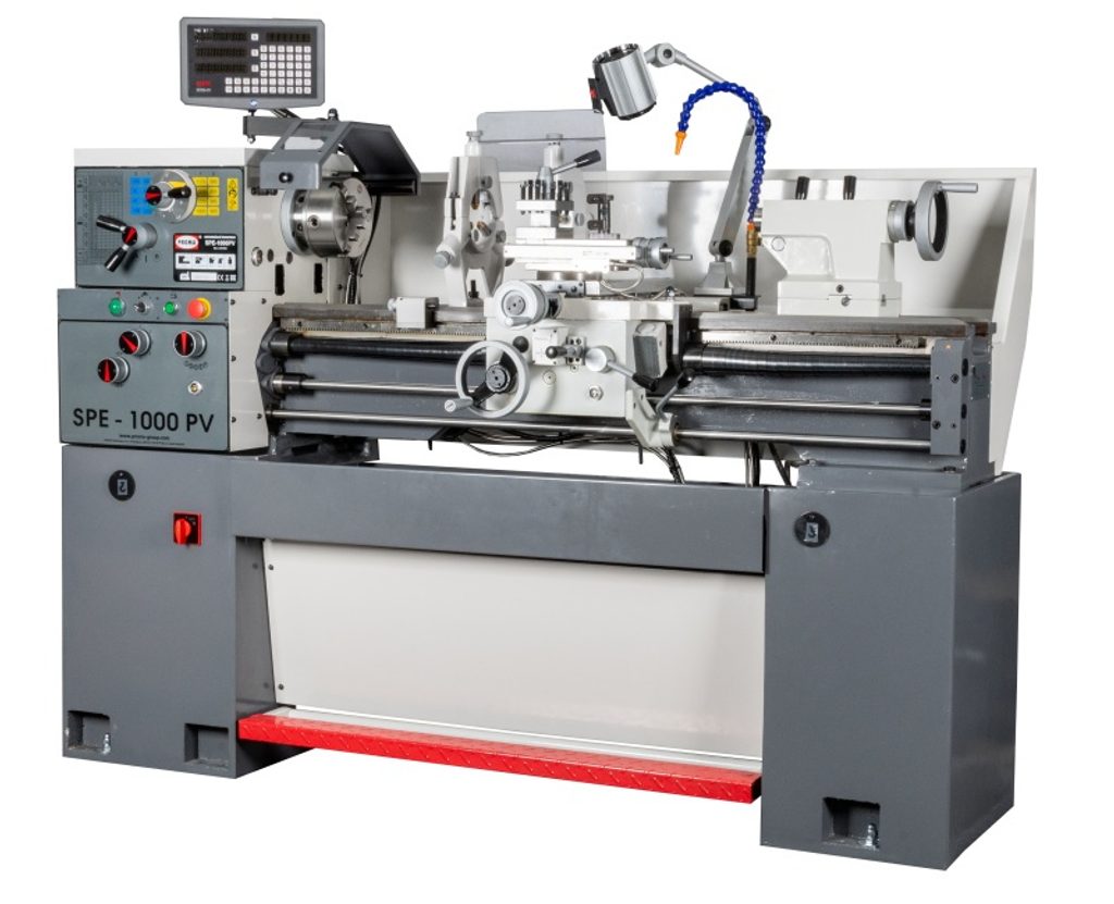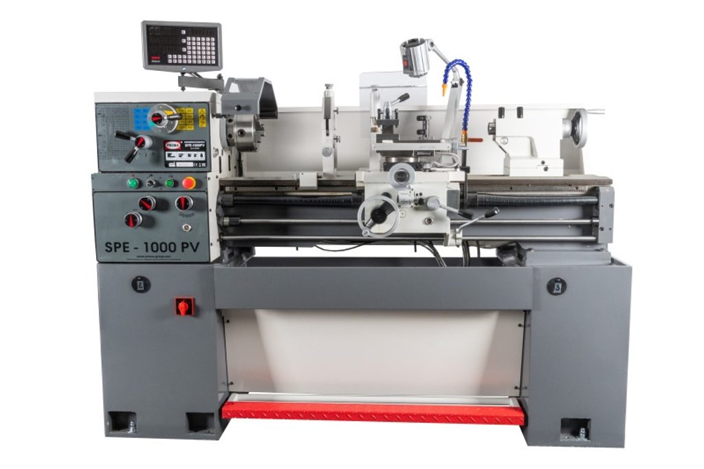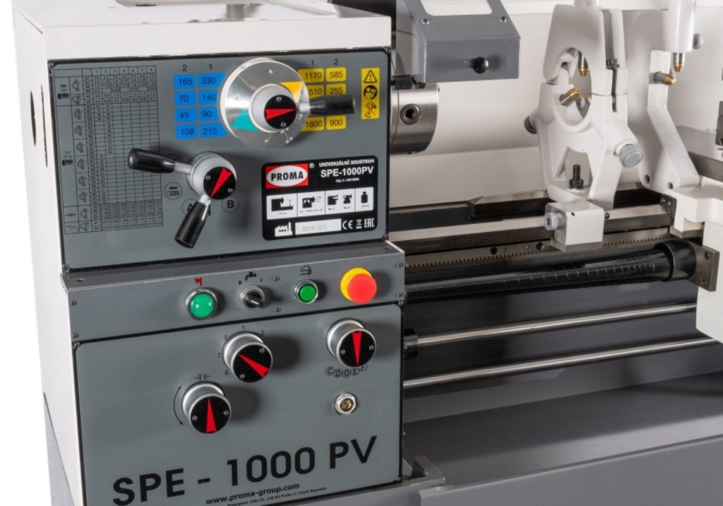 Univerzální soustruh na kov SPE-1000PV s točným průměrem 356 mm nad ložem a digitálním odměřováním 3 os