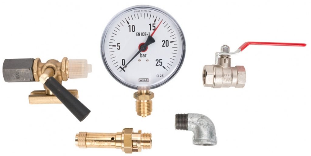 Kompletní sada armatur pro tlakové nádoby.
