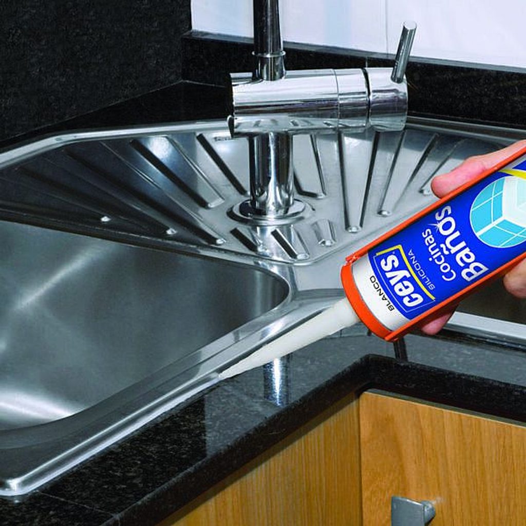 Utěsnění sprch, van, umyvadel, kádí, záchodů, bidetů, dřezů, sklokeramických povrchů, pracovních ploch.