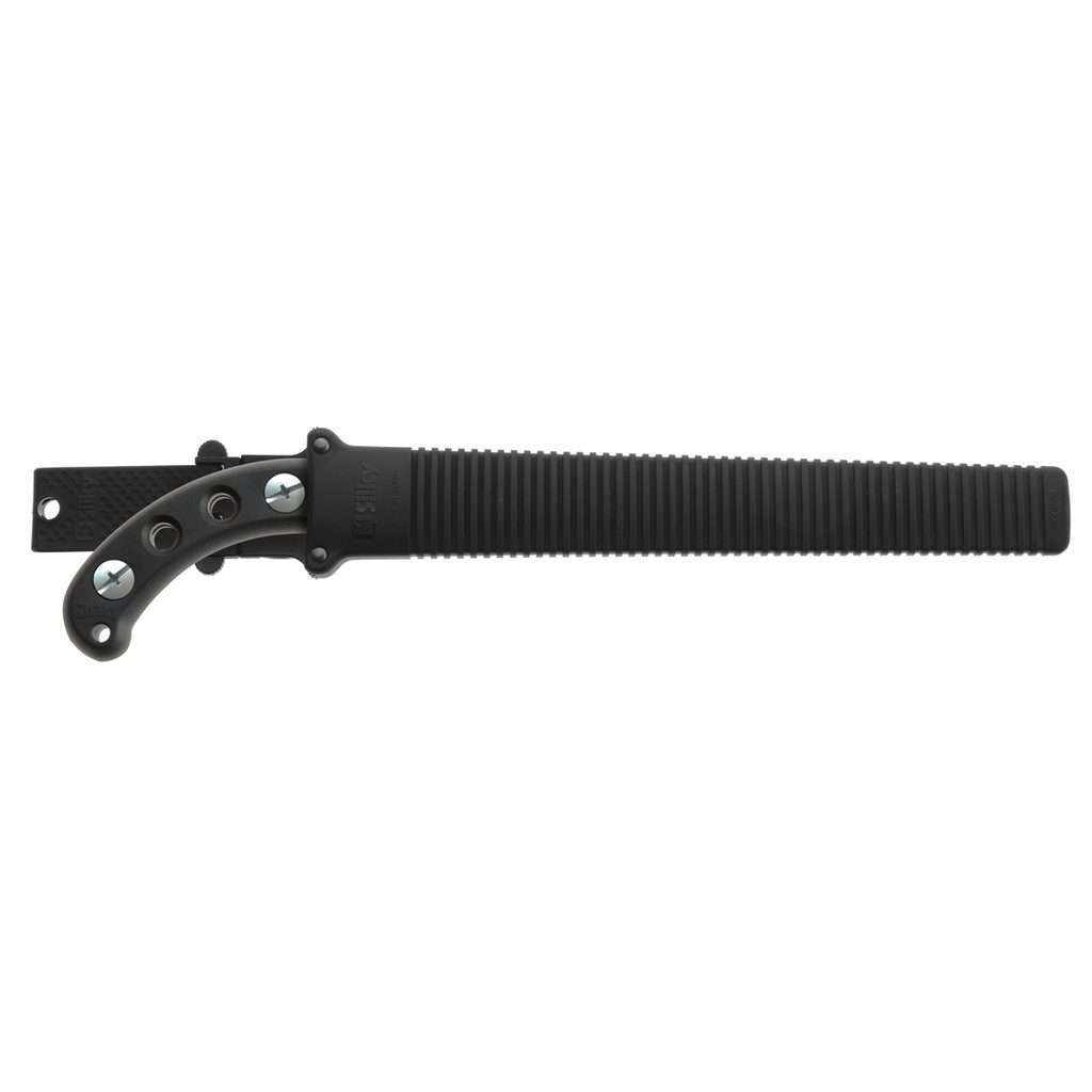 Až na některé výjimky, kdy je rukojeť pil Silky vyrobena z ocele nebo hliníku, používá Silky na materiál rukojetí speciální pryž – GOM. Ta má několik zásadních výhod. Pocitově na dotyk je tento povrch velmi příjemný, i v chladném počasí příjemně hřeje a díky poddajnému povrchu Vás rukojeť netlačí ani po celodenní práci. Navíc neklouže ani ve zpocených rukou, což má zase příznivý vliv na vedení celé pily a tím i bezpečnost. Rukojeť také účinně pohlcuje vibrace, které při řezání vznikají. Důležitou vlastností pil Silky je to, že tělo pily prochází jako jedna část skrz celou rukojeť až na konec. Nikdy tedy nehrozí zlomení čepele za hranou začátku rukojeti, jako u některých jiných pil a rovněž při řezání tvoří celá pila tuhý celek, který se v rukojeti neprohýbá. Kontrola pily při řezání je tak dokonalá. Rozebrání rukojeti při výměně pilového listu je řešeno rovněž velmi jednoduše a každý uživatel tuto operaci zvládne hravě sám.