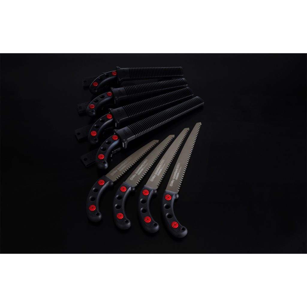 Až na některé výjimky, kdy je rukojeť pil Silky vyrobena z ocele nebo hliníku, používá Silky na materiál rukojetí speciální pryž – GOM. Ta má několik zásadních výhod. Pocitově na dotyk je tento povrch velmi příjemný, i v chladném počasí příjemně hřeje a díky poddajnému povrchu Vás rukojeť netlačí ani po celodenní práci. Navíc neklouže ani ve zpocených rukou, což má zase příznivý vliv na vedení celé pily a tím i bezpečnost. Rukojeť také účinně pohlcuje vibrace, které při řezání vznikají. Důležitou vlastností pil Silky je to, že tělo pily prochází jako jedna část skrz celou rukojeť až na konec. Nikdy tedy nehrozí zlomení čepele za hranou začátku rukojeti, jako u některých jiných pil a rovněž při řezání tvoří celá pila tuhý celek, který se v rukojeti neprohýbá. Kontrola pily při řezání je tak dokonalá. Rozebrání rukojeti při výměně pilového listu je řešeno rovněž velmi jednoduše a každý uživatel tuto operaci zvládne hravě sám.