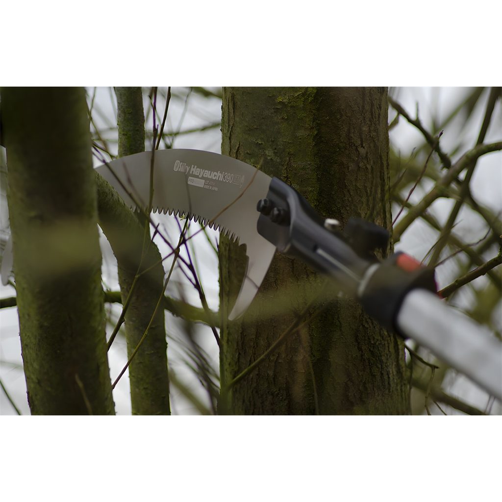 Všechny pily Silky s teleskopickou násadou mají pilový plát vyroben stejnou technologií jako menší pily. Teleskopická násada není kruhového průřezu, ale oválného. Tím se zásadním způsobem zvyšuje tuhost celého celku. Jednotlivé segmenty jsou vyrobeny z velmi pevné, ale lehké slitiny duralu a v dolní úchopové části je pila opatřena perfektní neklouzavou rukojetí ze speciální pryže – GOM. Jednotlivé výsuvné sekce jsou opatřeny promyšleným a lehce ovladatelným zámkem, který je dále zesílen speciálními svorkami. Díky tomuto důmyslnému systému se i plně vysunutá pila na rozhraní jednotlivých sekcí „neviklá“. Můžete tak pohodlně a s výbornou kontrolou pily, řezat i ve výškách dosahujících 8 metrů (Hayauchi).