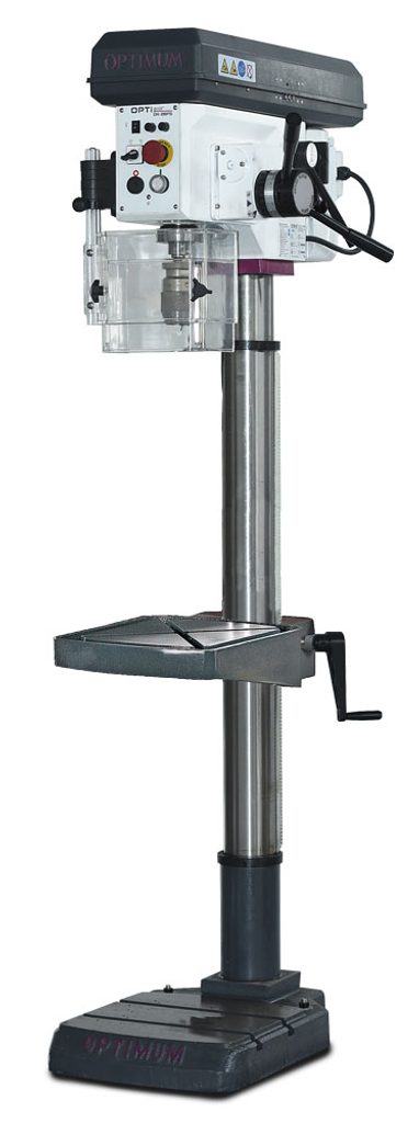 Sloupová vrtačka se strojním posuvem pinoly.