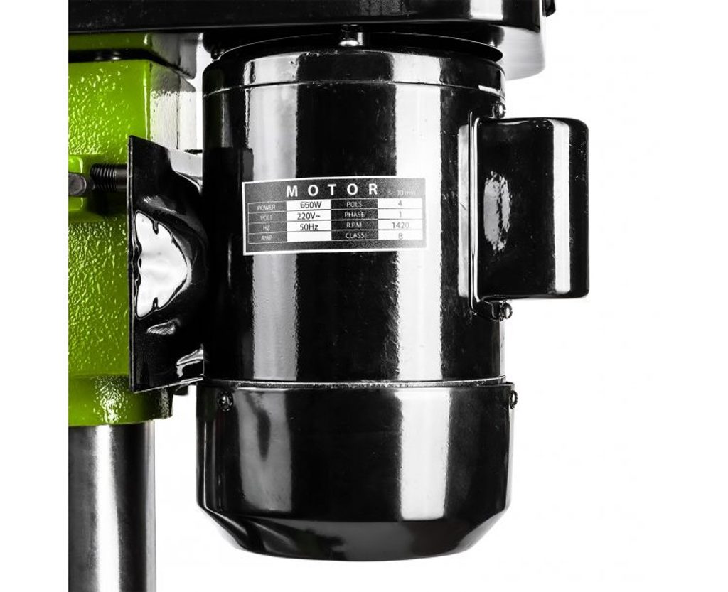 Sloupová vrtačka Procraft BD2000 je určena k vrtání do dřeva, kovu nebo plastů. Regulace otáček v 16 rychlostních stupních vrtání umožňuje nastavení optimálních parametrů při práci s různými materiály. Silný motor s výkonem 650 W a vysokých otáček až 2770 zaručuje dlouhou bezporuchovou práci. Ozubené sklíčidlo umožňuje upnutí vrtáků a stopkových nástrojů do průměru 20 mm. Možnost natáčení pracovního stolu až o 360° a naklápění do úhlu ±45°. Balení karton.
