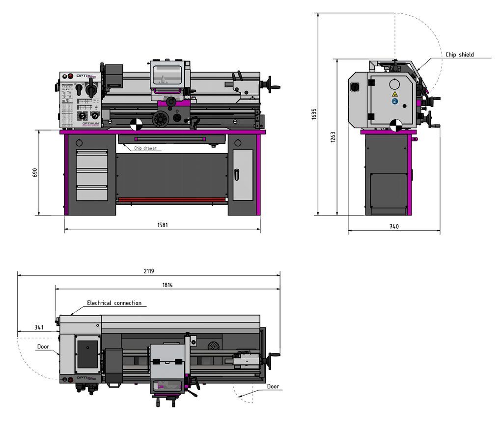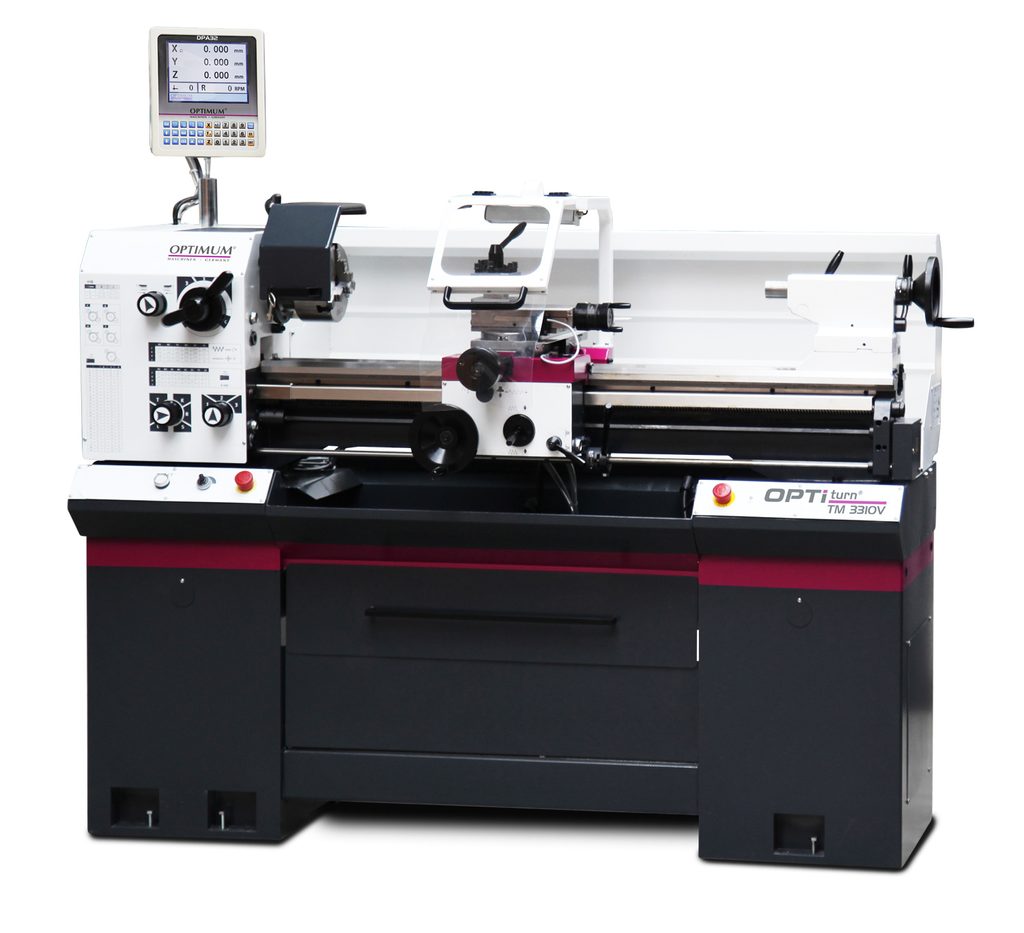 Plně vybavený soustruh s vodicím a tažným šroubem, digitálním odměřováním polohy a s plynulou regulací otáček.