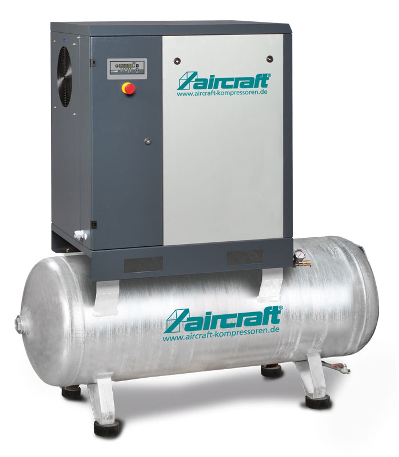 Šroubový kompresor s řemenovým pohonem a tlakovou nádobou pro trvalý provoz a 100% zatížení – vysoká provozní bezpečnost.