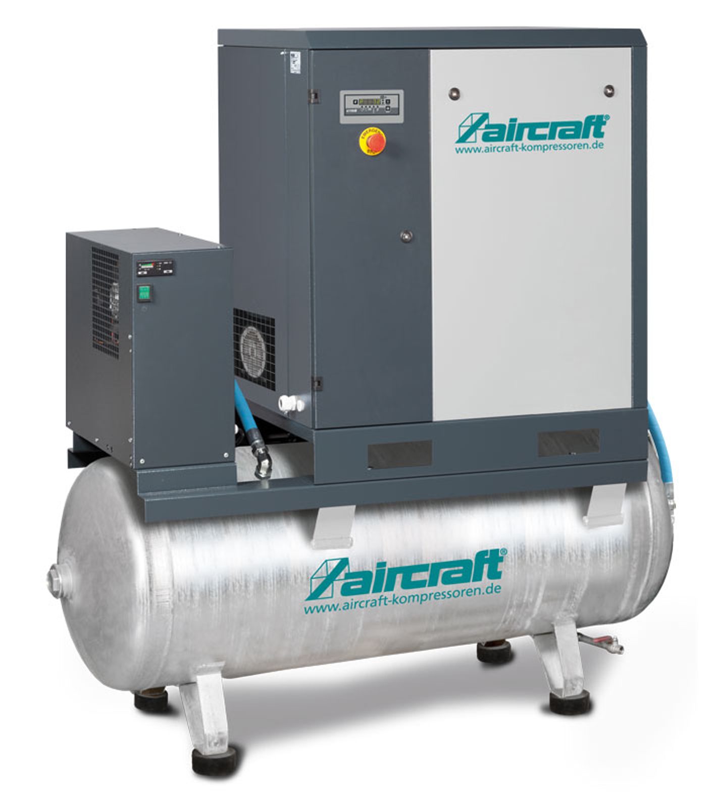Šroubový kompresor s řemenovým pohonem, tlakovou nádobou a kondenzační sušičkou pro trvalý provoz a 100% zatížení – vysoká provozní bezpečnost.