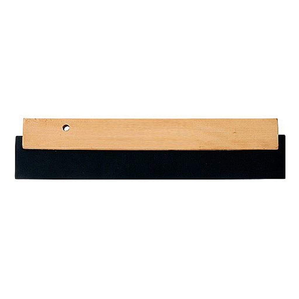 Stěrka / špachtle s dřevěným rámem a gumovým hladítkem.